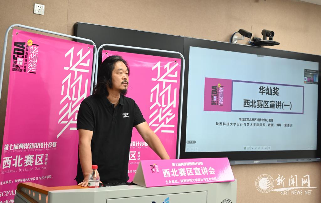 2021年7月24日上午,第七屆“兩岸新銳設(shè)計(jì)競(jìng)賽·華燦獎(jiǎng)”西北賽區(qū)宣講會(huì)在陜西科技大學(xué)舉辦?!皟砂缎落J設(shè)計(jì)競(jìng)賽·華燦獎(jiǎng)”是進(jìn)一步探索海峽兩岸融合發(fā)展新路,深化兩岸經(jīng)濟(jì)文化交流合作,推動(dòng)海峽兩岸暨香港、澳門廣大青年交流互動(dòng)的重要平臺(tái);該獎(jiǎng)現(xiàn)已列入教育部學(xué)科競(jìng)賽名錄。2021年第七屆“華燦獎(jiǎng)”新設(shè)十大賽區(qū),實(shí)行賽區(qū)賽、全國(guó)總決賽二級(jí)賽制。西北賽區(qū)包括陜西、甘肅、青海、寧夏、新疆五省區(qū)共計(jì)四十余所相關(guān)高校,自5月份開(kāi)始報(bào)名以來(lái),西北地區(qū)高校師生及青年設(shè)計(jì)師們踴躍參加,報(bào)名數(shù)量不斷遞增。西北賽區(qū)承辦單位為陜西科技大學(xué),賽區(qū)組委會(huì)主任為陜西科技大學(xué)校長(zhǎng)李志健教授、組委會(huì)執(zhí)行主任為陜西科技大學(xué)設(shè)計(jì)與藝術(shù)學(xué)院院長(zhǎng)詹秦川教授,組委會(huì)執(zhí)行副主任為西北地區(qū)其他高校設(shè)計(jì)及美術(shù)學(xué)院院長(zhǎng)。宣講會(huì)現(xiàn)場(chǎng),華燦工場(chǎng)負(fù)責(zé)人、陜西科技大學(xué)設(shè)計(jì)與藝術(shù)學(xué)院相關(guān)領(lǐng)導(dǎo)、西北賽區(qū)相關(guān)院校負(fù)責(zé)人、西北賽區(qū)高校師生等通過(guò)線上與線下相結(jié)合的方式共同參與了本次盛會(huì)。會(huì)議由陜西科技大學(xué)設(shè)計(jì)與藝術(shù)學(xué)院副院長(zhǎng)米高峰教授主持。