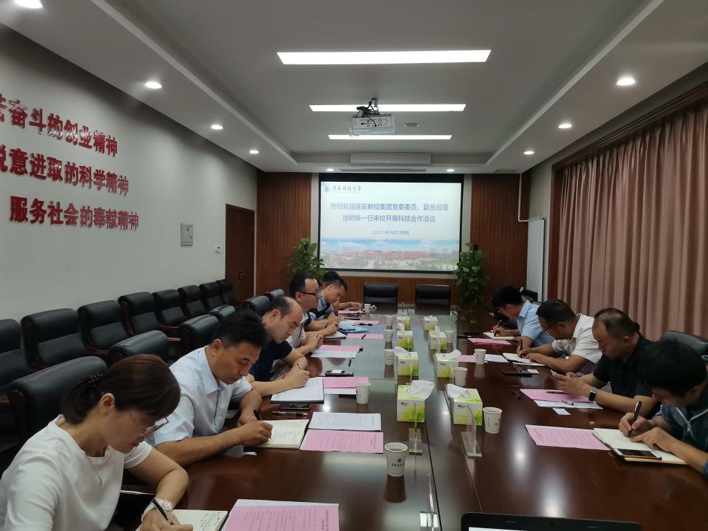 徐樹棟對我校在科技成果轉(zhuǎn)化、校地合作成效方面取得的成果給予了高度評價。他介紹了延安新區(qū)投資發(fā)展集團的整體情況和合作意向,希望能夠與學(xué)校圍繞公司業(yè)務(wù)特色開展多種形式的產(chǎn)學(xué)研合作,同時誠邀學(xué)校領(lǐng)導(dǎo)、專家到延安新區(qū)實地考察,開展一系列實質(zhì)性合作。