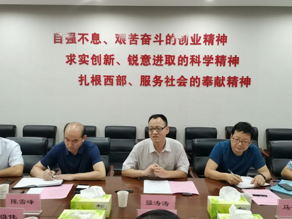 會上,前沿院常務(wù)副院長強濤濤對徐樹棟一行的到來表示歡迎,并簡要介紹了我校的發(fā)展歷程、社會服務(wù)和發(fā)明專利授權(quán)量等情況,重點介紹了學(xué)校科技成果轉(zhuǎn)化的優(yōu)勢與特點以及校外技術(shù)轉(zhuǎn)移中心建設(shè)情況。他表示,學(xué)校高度重視科技成果轉(zhuǎn)化與校企合作,延安新區(qū)投資發(fā)展集團實力雄厚、業(yè)務(wù)領(lǐng)域廣泛,雙方在多領(lǐng)域有著較好的合作基礎(chǔ),希望通過此次對接能夠與集團開展更加廣泛深入的科技合作。