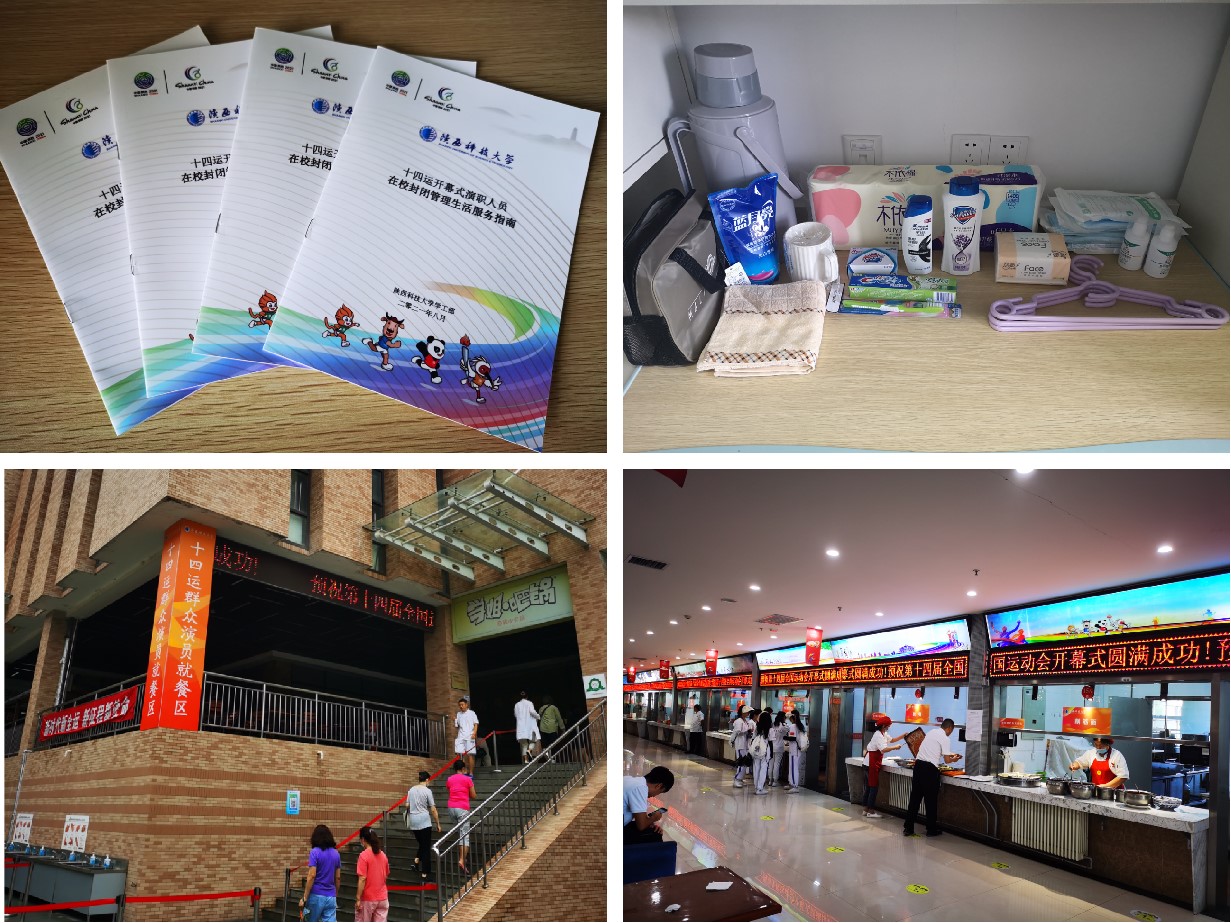 三是細(xì)致入微,悉心提供優(yōu)質(zhì)服務(wù)。為保障好演職人員在校期間的餐飲、洗浴、購(gòu)物、就醫(yī)、文體娛樂(lè)等需求,讓演職人員生活便利、舒心,各部門(mén)緊密協(xié)同,提前完成十四號(hào)公寓供水設(shè)施、排污設(shè)施、廣場(chǎng)硬化、一體床及空調(diào)安裝等工程。集合點(diǎn)為各入駐單位設(shè)立辦公專(zhuān)用場(chǎng)地,配齊全部辦公設(shè)備和用品,保障正常開(kāi)展工作。提供全新住宿條件,各樓層設(shè)立飲水機(jī),24小時(shí)提供直飲水和熱水保障,提供免費(fèi)洗衣和全天候洗浴保障。宿舍配備垃圾桶、垃圾袋、拖把、晾衣桿等公用設(shè)施和用具,配齊全部生活用品和床上用品,分裝成臥具包和洗漱包,提前放入房間。就餐采用自助餐與個(gè)體點(diǎn)餐相結(jié)合的方式,提供一流的餐飲保障,滿(mǎn)足不同類(lèi)別人員的飲食需求。水、電、網(wǎng)絡(luò)維修實(shí)行全天候保障,確保第一時(shí)間現(xiàn)場(chǎng)處置。學(xué)校還專(zhuān)門(mén)編寫(xiě)了《十四運(yùn)開(kāi)幕式演職人員在校管理生活服務(wù)指南》,作好生活向?qū)?,為進(jìn)駐人員提供貼心快捷的服務(wù)。