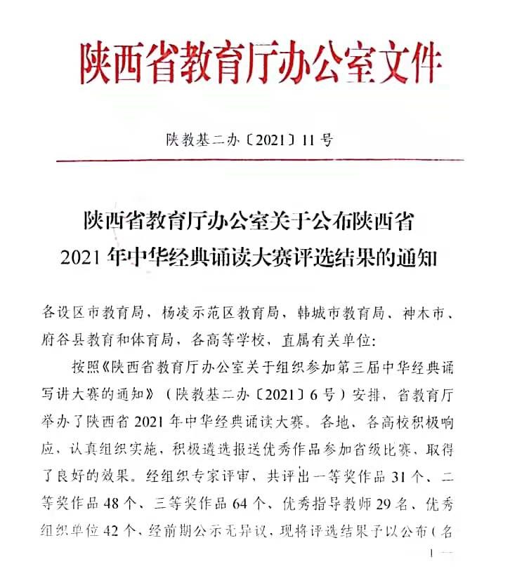 我校在陜西省2021年中華經(jīng)典誦讀大賽中榮獲佳績