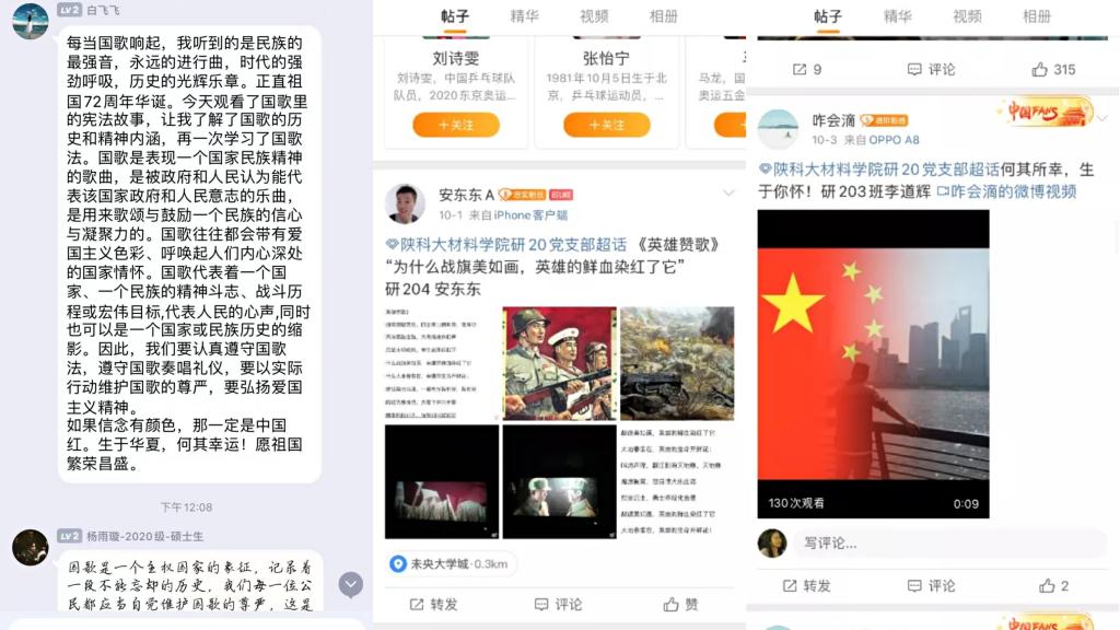 學(xué)習(xí)黨史國史 傳承紅色基因。研究生各黨支部積極響應(yīng)研工部號召,統(tǒng)籌線上線下, 開展了“學(xué)習(xí)黨史國史、傳承紅色基因"主題黨日活動(dòng),引導(dǎo)全體黨員共抒愛國情懷、共話祖國新貌、共享國慶喜悅,抒發(fā)廣大研究生黨員表白祖國、祝福祖國的熱烈情感。
