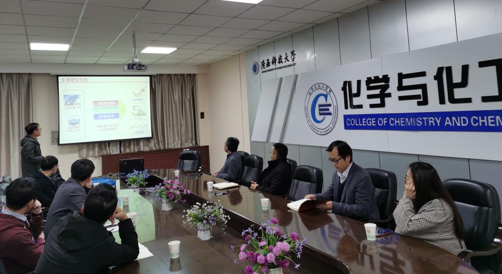 為促進(jìn)對外開放交流,助力學(xué)科內(nèi)涵式發(fā)展,服務(wù)人才快速成長,10月11日下午,應(yīng)我?;瘜W(xué)與化工學(xué)院邀請,華中科技大學(xué)國家杰出青年基金獲得者盧興教授圍繞國家級、省部級青年人才培養(yǎng)與相關(guān)科學(xué)研究進(jìn)行工作指導(dǎo)。學(xué)院班子成員、部分青年人才參與會議,會議由院長費(fèi)貴強(qiáng)主持。