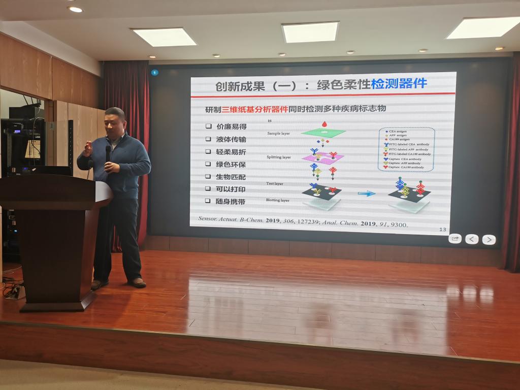 于海東教授以“面向健康的綠色柔性電子”為題,以綠色柔性電子紙基材料、魚(yú)明膠等在綠色柔性電子領(lǐng)域應(yīng)用的經(jīng)典案例,介紹了面向健康的綠色柔性電子的研究前沿動(dòng)態(tài)以及未來(lái)的挑戰(zhàn)和機(jī)遇。