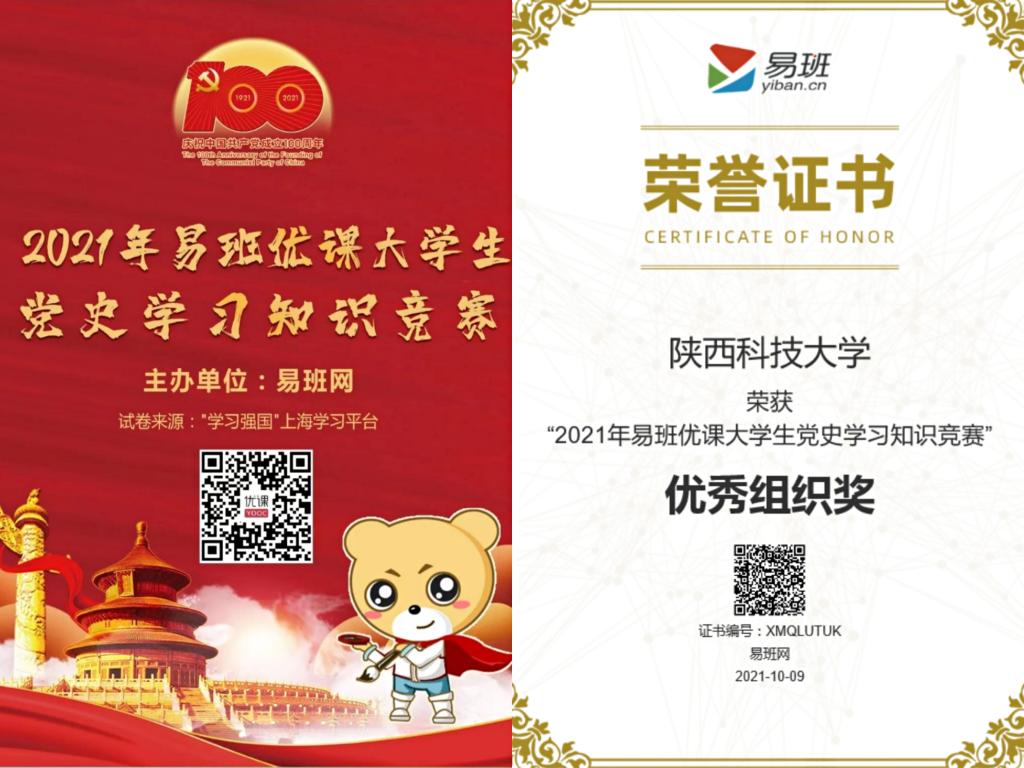 近日,由“易班網(wǎng)”主辦,在“易班優(yōu)課”平臺線上開展的“2021年易班優(yōu)課大學(xué)生黨史學(xué)習(xí)知識競賽”活動落下帷幕,我校榮獲“2021年易班優(yōu)課大學(xué)生黨史學(xué)習(xí)知識競賽”百強(qiáng)高校優(yōu)秀組織獎。本次競賽所用試卷由“學(xué)習(xí)強(qiáng)國”上海學(xué)習(xí)平臺提供,全國848所高校66.7萬學(xué)生參加課群學(xué)習(xí),54.6萬學(xué)生參加知識競賽。