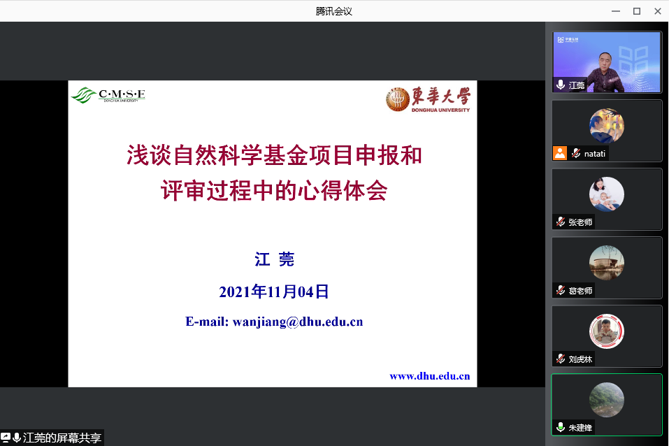11月3日上午,應我校材料科學與工程學院邀請,東華大學江莞教授做客我?!扒把乜茖W論壇”,通過騰訊會議作了題為“淺談自然科技基金項目申報和評審過程中的心得體會”的報告。報告由材料學院院長朱建鋒主持,材料學院部分教師、研究生參加了此次學術報告會。