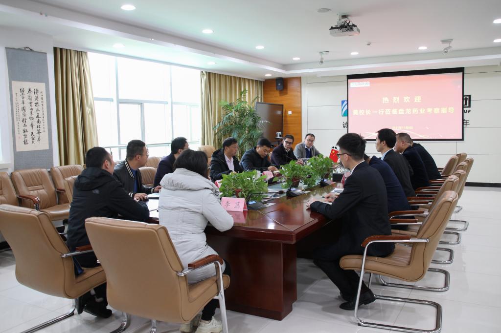 我校生物醫(yī)藥重點產(chǎn)業(yè)鏈成果轉(zhuǎn)化創(chuàng)新團隊成員梁承遠匯報了近年來與盤龍藥業(yè)集團項目合作的情況;張德柱介紹了研究院相關(guān)情況及集團技術(shù)需求、產(chǎn)業(yè)發(fā)展瓶頸;熊太林介紹了公司人才發(fā)展現(xiàn)狀及需求。