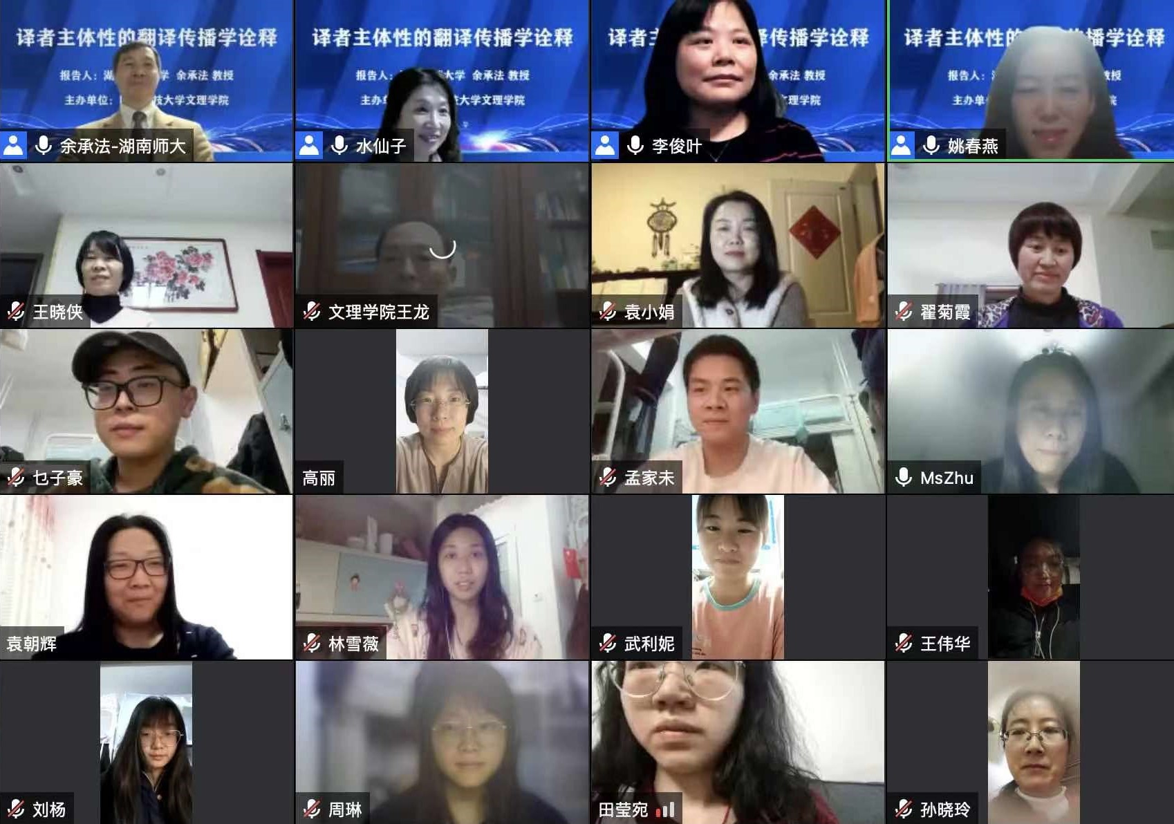 11月30日晚,湖南師范大學余承法教授做客我?!扒把乜茖W報告”,作了題為“譯者主體性的翻譯傳播學詮釋”的線上講座。講座由文理學院MTI中心副主任姚春燕主持,外語系師生聆聽了此次講座。
