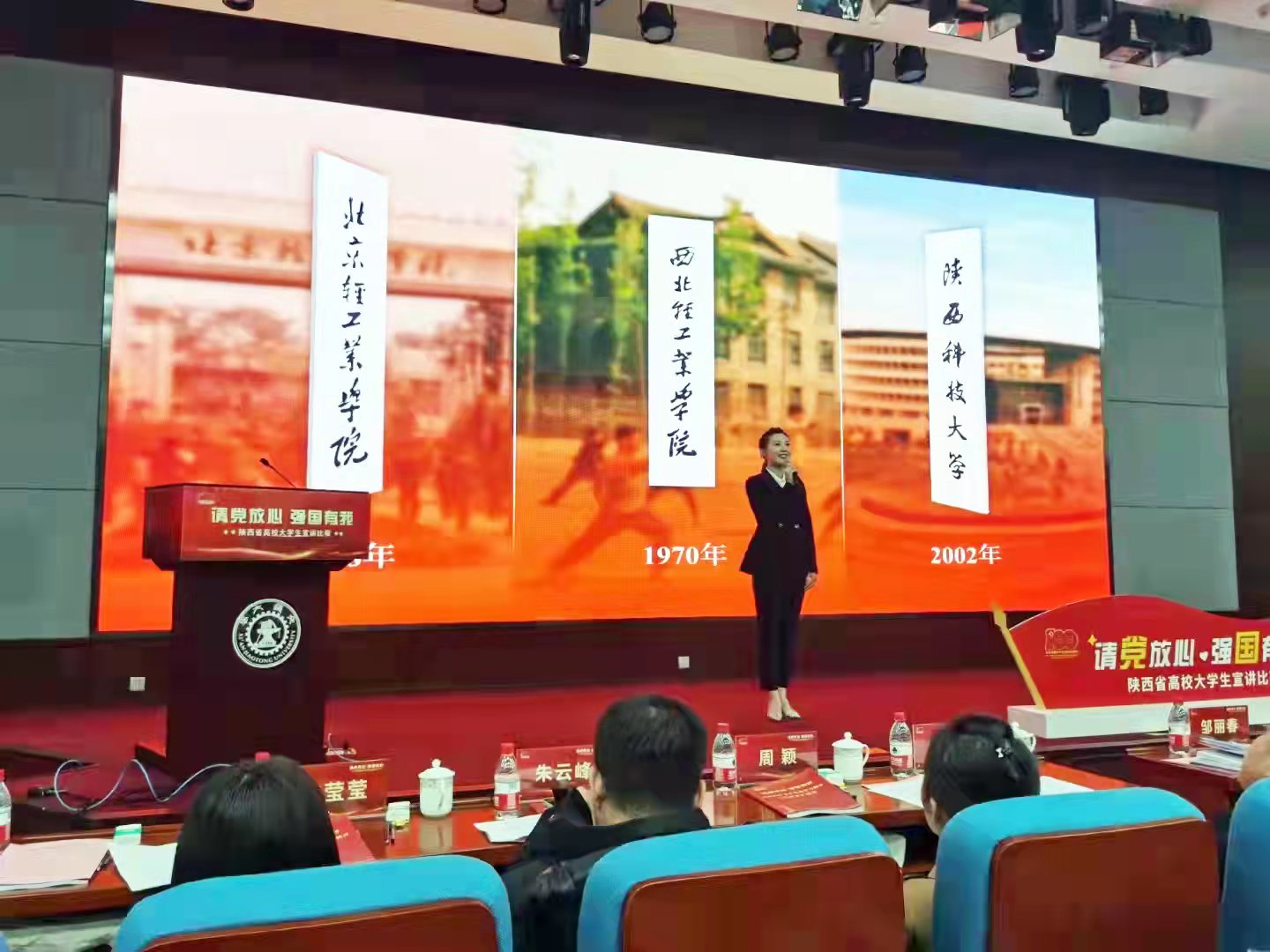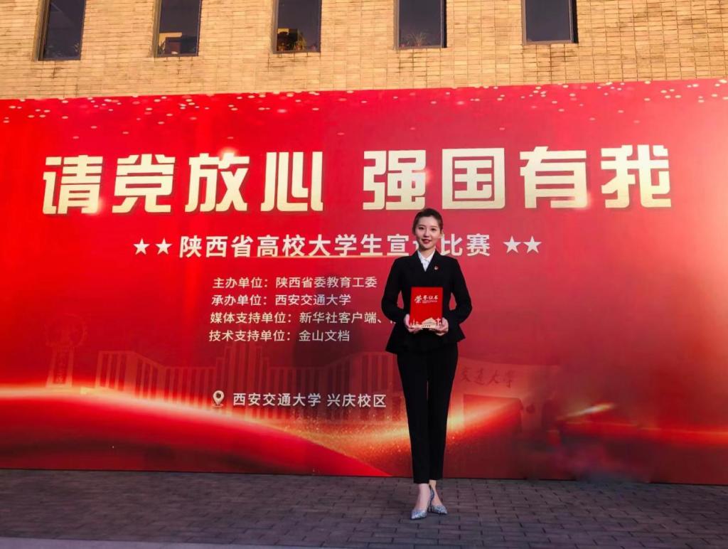 此次宣講比賽由陜西省委教育工委主辦、西安交通大學(xué)承辦,來自全省71所高校的109名大學(xué)生代表參加比賽,經(jīng)校內(nèi)選拔賽,省級初賽、決賽到現(xiàn)場總決賽,比賽歷時近兩個月。在學(xué)校黨委宣傳部和研究生工作部的指導(dǎo)下,馬克思主義學(xué)院認真組織,精心備賽。現(xiàn)場總決賽中,田韻歌同學(xué)以《追尋先輩足跡——向西而歌》為題,講述了我校西遷先輩,聽黨指揮跟黨走,與黨和國家、與民族和人民同呼吸共命運,用忠誠、擔(dān)當(dāng)、奮斗譜寫的一曲“三創(chuàng)兩遷”贊歌,最終,憑借飽滿的情感、大氣的臺風(fēng)、穩(wěn)定的發(fā)揮,打動了現(xiàn)場評委,感染了現(xiàn)場觀眾,榮獲“特等獎”。