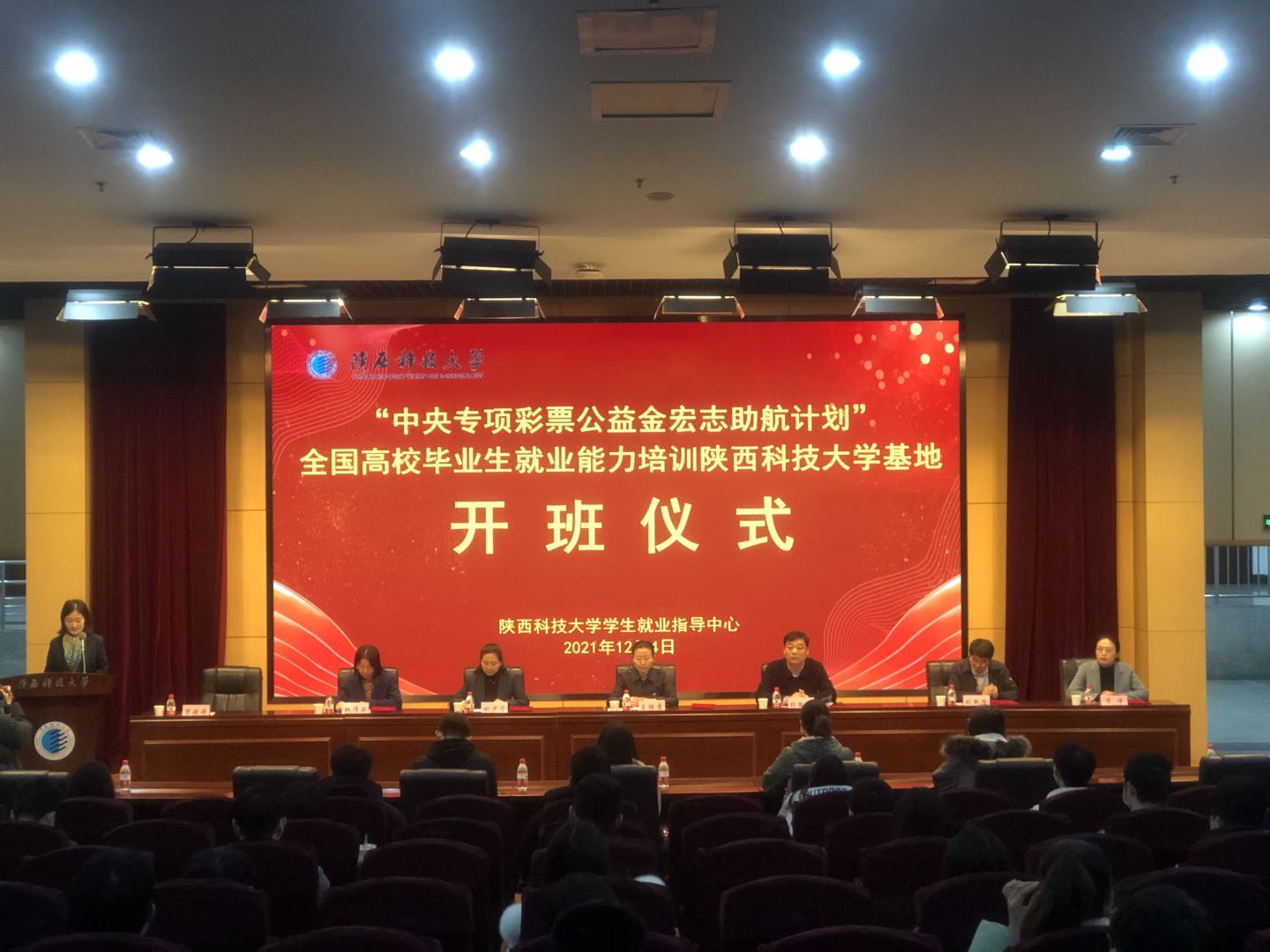 12月4日,陜西科技大學(xué)“中央專項彩票公益金宏志助航計劃”全國高校畢業(yè)生就業(yè)能力培訓(xùn)基地揭牌暨開班儀式在圖書館一樓報告廳順利舉行。陜西省教育廳高校學(xué)生工作處副處長王繼霞受邀出席儀式并為我校“宏志助航計劃——全國畢業(yè)生就業(yè)能力培訓(xùn)基地”揭牌,為授課教師代表頒發(fā)聘書。