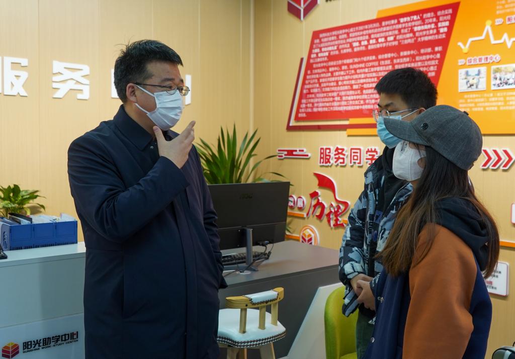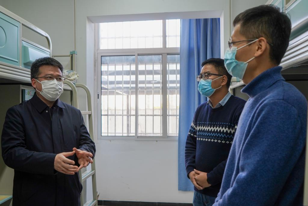 12月26日下午,校黨委副書記郭強(qiáng)深入學(xué)生公寓,檢查指導(dǎo)疫情防控工作。郭強(qiáng)一行先后深入學(xué)生公寓、陽光助學(xué)中心等地,詳細(xì)了解了防控管理、宣傳引領(lǐng)、物資保障等情況,慰問戰(zhàn)斗在一線的學(xué)生工作干部、學(xué)生志愿者,并就進(jìn)一步做好疫情防控工作,做好宣傳教育與正面疏導(dǎo)進(jìn)行專題指導(dǎo)。