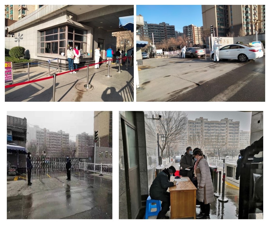 切實守好“外防輸入”第一關(guān),做好小區(qū)的守護神。物業(yè)召開全體工作人員會議,分工明確,對小區(qū)進行封閉式管理,對進出小區(qū)的人員明確并嚴格執(zhí)行防控政策,堅決不把任何風險帶入和帶出小區(qū),確保居民的安全。防疫期間,沁園小區(qū)物業(yè)嚴守出入口,在進出入口都有物業(yè)工作人員進行登記和疏導?!胺潜仨毑煌獬觥?、對出入人員嚴格進行48小時核酸檢查,嚴格測溫檢測和掃碼登記,對沒有相關(guān)手續(xù)的人員耐心勸返,對于不明外來人員禁止入內(nèi),對于外地回家的教職工家屬第一時間通報社區(qū),并按程序辦理,查驗48小時核酸陰性結(jié)果方能進小區(qū)。面對寒冷的天氣,尤其面對一些不配合、不自覺的聲音,他們不厭其煩的勸說和解釋,沒有絲毫抱怨與退縮,只因心中有“大家”。