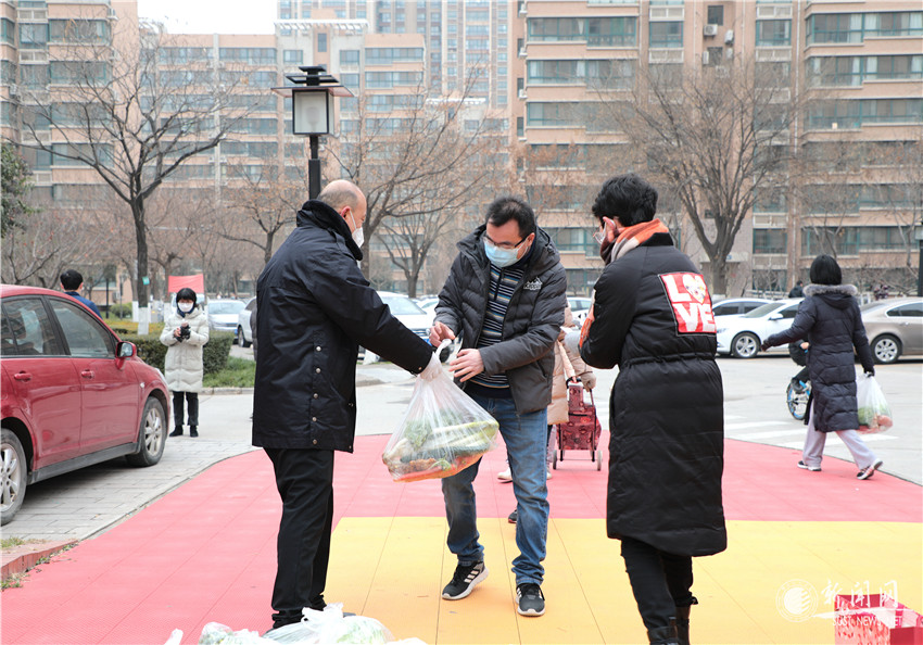 在校工會、物業(yè)管理中心和“沁園紅”黨員先鋒服務隊的共同協(xié)作下,捐贈物資很快被卸貨、整理安置在小區(qū)廣場。隨后“沁園紅”各服務隊隊長按樓宇通知并發(fā)放菜票到每一戶,住戶們憑票有序前來領取。