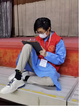 12月28日,陜西科技大學(xué)實(shí)行宿舍半制動模式。從那天起,校青團(tuán)70名志愿者每天都處于待命狀態(tài)。直到采訪當(dāng)日(1月10日),齊博毅依然會定6個(gè)鬧鐘——早上六點(diǎn)、七點(diǎn)、八點(diǎn)。每小時(shí)兩個(gè)鬧鈴,鈴響后,第一時(shí)間打開微信、QQ?!芭掠芯o急通知,我印象最深刻的一次就是12月26日——給考研的同學(xué)們做核酸檢測。早上十點(diǎn)半,收到十一點(diǎn)集合準(zhǔn)備做核酸的消息。那天是我到崗最快的一次。”他解釋到。