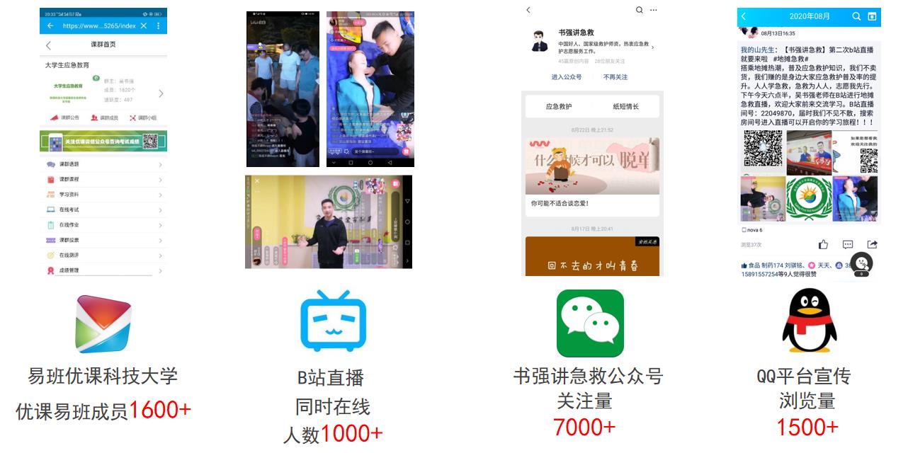 三是推進(jìn)活動(dòng)載體多樣化,提升育人實(shí)效性。打造了“一體兩翼”育人載體平臺(tái),即以線下應(yīng)急救護(hù)培訓(xùn)為主體,以微信公眾平臺(tái)、B站為兩翼,不斷豐富活動(dòng)形式,擴(kuò)大活動(dòng)覆蓋面。線下應(yīng)急救護(hù)培訓(xùn)主要依托陜西省紅十字會(huì)國(guó)家級(jí)救護(hù)師資、學(xué)校晨曦安全急救協(xié)會(huì)骨干成員定期開(kāi)展應(yīng)急培訓(xùn)活動(dòng),活動(dòng)內(nèi)容主要包括公寓骨干培訓(xùn)、校園急救教育講座、應(yīng)急演練等,累計(jì)開(kāi)展35場(chǎng)次,覆蓋15000余人。值得一提的是,2020年、2021年學(xué)校連續(xù)兩年在新生軍訓(xùn)過(guò)程中開(kāi)展急救教育培訓(xùn)活動(dòng),受到教育部門大力肯定。線上依托易班優(yōu)課、“書強(qiáng)”微信公眾平臺(tái)開(kāi)展急救教育,開(kāi)發(fā)易班精品視頻課程2套,發(fā)表原創(chuàng)網(wǎng)文50篇,累計(jì)參與量13萬(wàn),不斷推動(dòng)急救教育取得實(shí)效。