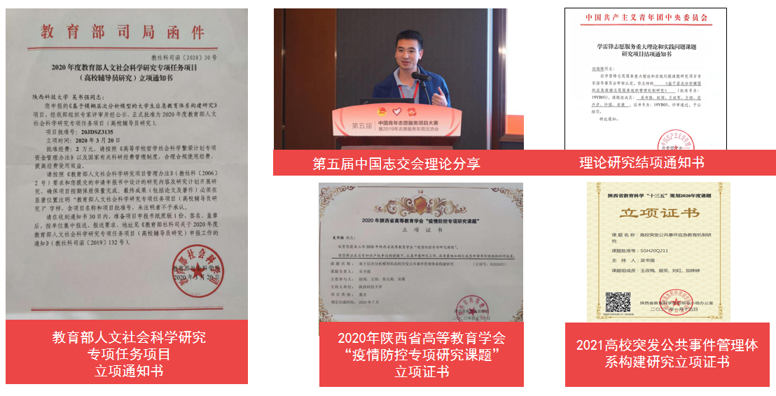 二是加強(qiáng)理論實(shí)踐一體化,提升育人專業(yè)性。堅(jiān)持理論指導(dǎo)和實(shí)踐探索辯證統(tǒng)一,在活動(dòng)開(kāi)展過(guò)程中,立足實(shí)際情況、聚焦實(shí)際問(wèn)題,基于解決重點(diǎn)難點(diǎn)問(wèn)題的好做法、好經(jīng)驗(yàn)開(kāi)展理論研究,又用正確的理論研究指導(dǎo)實(shí)踐活動(dòng),不斷提升項(xiàng)目的科學(xué)性、專業(yè)性。在實(shí)踐方面,“救在身邊”急救教育實(shí)踐項(xiàng)目獲第五屆中國(guó)青年志愿服務(wù)項(xiàng)目大賽銀獎(jiǎng)、2019年陜西省青少年公益項(xiàng)目大賽銅獎(jiǎng)、2019年全國(guó)希爾頓公益大賽優(yōu)秀獎(jiǎng)。在理論研究方面,先后獲批2019年團(tuán)中央學(xué)雷鋒志愿服務(wù)重大理論和實(shí)踐問(wèn)題課題研究項(xiàng)目(應(yīng)急救援志愿服務(wù)組織管理機(jī)制研究,項(xiàng)目編號(hào):19YB03)、2020年教育部人文社會(huì)科學(xué)研究專項(xiàng)任務(wù)項(xiàng)目(基于模糊層次分析模型的大學(xué)生急救教育體系構(gòu)建研究,項(xiàng)目編號(hào): 20JDSZ3135)、陜西高校2020年輔導(dǎo)員工作研究課題(基于FAHP模型的高校突發(fā)公共衛(wèi)生事件應(yīng)急管理機(jī)制研究,項(xiàng)目編號(hào):2020FKT20)。
