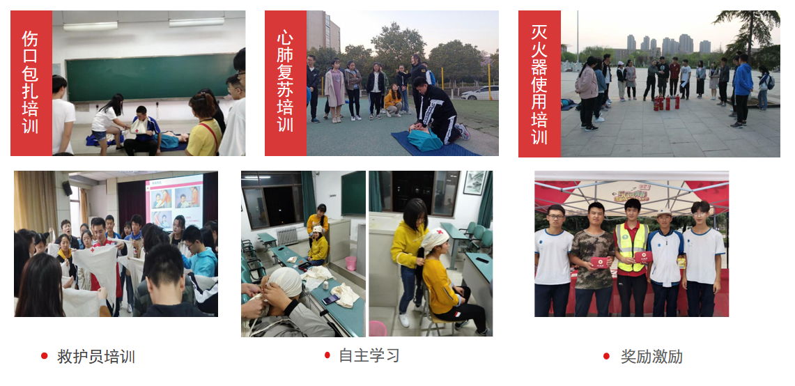 一是強(qiáng)化人才隊(duì)伍多元化,提升育人協(xié)同性。著力打造了一支“專兼結(jié)合、優(yōu)勢(shì)互補(bǔ)”的急救教育人才隊(duì)伍,不斷強(qiáng)化協(xié)同聯(lián)動(dòng)育人。將急救教育課程納入學(xué)生安全教育計(jì)劃,依托省紅十字會(huì)、中國(guó)紅十字會(huì)總會(huì)在現(xiàn)有思政工作隊(duì)伍中培養(yǎng)了技能過(guò)硬、素質(zhì)出眾的國(guó)家級(jí)救護(hù)師資5名;充分發(fā)揮學(xué)工、保衛(wèi)等部門力量,在一線輔導(dǎo)員、保衛(wèi)人員、公寓管理員中深入開(kāi)展應(yīng)急救護(hù)技能培訓(xùn),培養(yǎng)了一支頂?shù)蒙稀⒏傻孟碌募媛毤本冉逃?duì)伍;抓關(guān)鍵少數(shù),帶動(dòng)絕大多數(shù),積極鼓勵(lì)學(xué)生社團(tuán)、志愿服務(wù)組織開(kāi)展急救教育活動(dòng),在學(xué)校培養(yǎng)了一支300余名持有紅十字急救員證書的學(xué)生骨干隊(duì)伍,開(kāi)展系列急救教育實(shí)踐活動(dòng),營(yíng)造良好的急救教育文化氛圍。