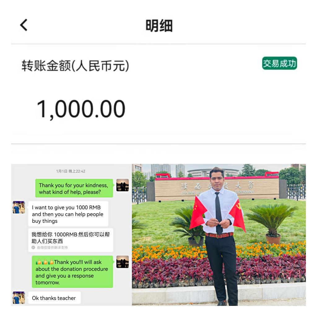 輕工技術(shù)與管理學(xué)院的博士研究生,孟加拉國的Md Rafikul Islam(拉菲),向?qū)W校捐贈了1000元。他說:“陜西科技大學(xué)就像我的家一樣,我希望盡綿薄之力,幫助我的家人們度過難關(guān)”。2018年以來,他在我校攻讀碩士,今年有讀了博士。目前在浙江溫州實習(xí)。拉菲是心系母校的國際學(xué)生代表之一,在抗擊疫情的關(guān)鍵時期,校內(nèi)國際學(xué)生積極配合,遵守防疫規(guī)定,堅持不出門,同心助力戰(zhàn)疫情。他們相信中國政府,相信陜西科技大學(xué),一定能打贏這次攻堅戰(zhàn)。