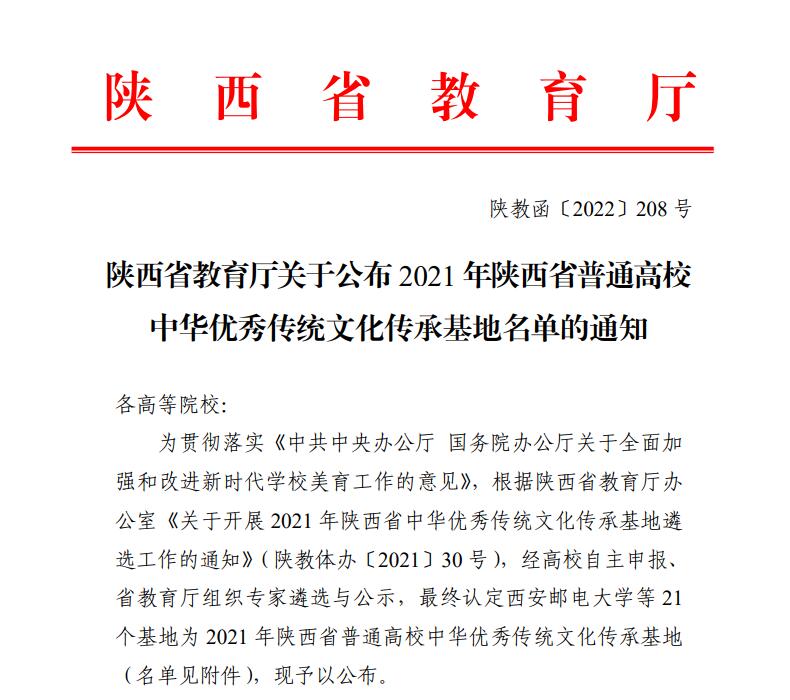 我校獲批陜西省普通高校中華優(yōu)秀傳統(tǒng)文化傳承基地