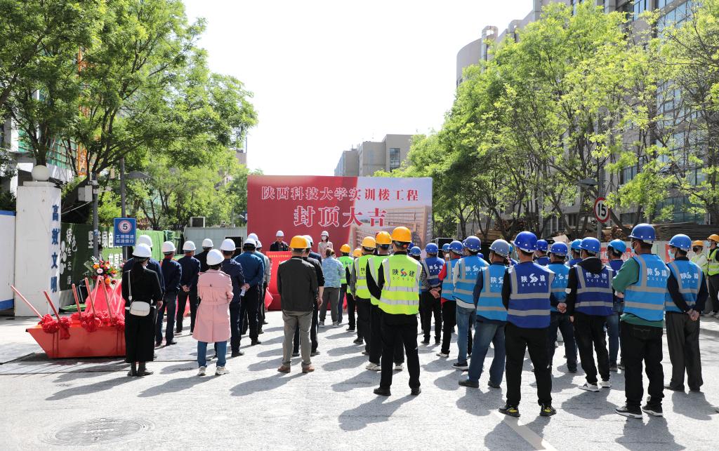 實(shí)訓(xùn)樓建設(shè)項(xiàng)目是我校申報的國家中西部高?;A(chǔ)能力建設(shè)工程(二期)具體建設(shè)項(xiàng)目(中央預(yù)算投資1億元),也是我校重大民生工程,校黨委、校行政高度重視,項(xiàng)目施工期間,校領(lǐng)導(dǎo)多次深入施工現(xiàn)場檢查督導(dǎo)工作。封頂儀式上,楊欲曉充分肯定了該工程的觀感質(zhì)量和現(xiàn)場的安全文明秩序,對實(shí)訓(xùn)樓能夠如期封頂表示祝賀,對項(xiàng)目各參建單位的辛勤付出表示感謝,對項(xiàng)目后續(xù)施工提出希望和要求,“行百里半九十”,他希望參建單位能夠繼續(xù)保持艱苦奮斗的工作作風(fēng),如期且保質(zhì)保量的為陜科大交付滿意工程,從而進(jìn)一步改善我校基礎(chǔ)教學(xué)、實(shí)驗(yàn)實(shí)訓(xùn)條件;并向施工單位、監(jiān)理單位頒發(fā)了錦旗,向勞務(wù)人員發(fā)放了慰問品,與各參建單位代表、校屬相關(guān)部門負(fù)責(zé)人為實(shí)訓(xùn)樓共筑最后一斗混凝土。