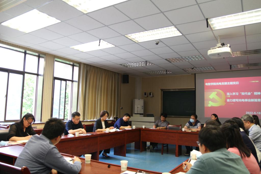在會前自學的基礎上,張麥麗重點傳達了學校七屆一次“雙代會”上校黨委書記姚書志和校長李志健講話精神。與會黨員逐一圍繞如何學習貫徹“雙代會”精神,進一步推動黨建與業(yè)務工作相融相促,暢談心得,建言獻策。系主任張方暉從開新局的角度,闡述了光電學科專業(yè)未來發(fā)展方向,強調教師要有使命感,要擔當負責,為學院、學校發(fā)展貢獻力量。馬令坤結合光電系的發(fā)展歷程,強調要以博士點申報、“產(chǎn)業(yè)學院”建設為契機,聚焦“四個面向”,加強軍民融合、校企合作,不斷提升事業(yè)發(fā)展水平。呂文華在總結中表示,此次主題黨日活動既是一次貫徹落實學?!半p代會”精神的學習研討,也是聚焦學校發(fā)展目標,以黨建為引領推動光電學科專業(yè)建設的深入動員,教師黨員要帶頭深入學習領會學?!笆奈濉卑l(fā)展規(guī)劃,把個人發(fā)展和學校、學院發(fā)展緊密結合起來,相互融合、相互促進、同頻共振;支部要在教育管理監(jiān)督黨員、組織宣傳凝聚服務師生上下功夫,加強團隊建設,加大開放交流,激發(fā)教師的主動性、能動性和創(chuàng)造性,在學科建設、教學科研、人才培養(yǎng)等方面不斷取得新突破,服務和保障學院事業(yè)發(fā)展開新局。