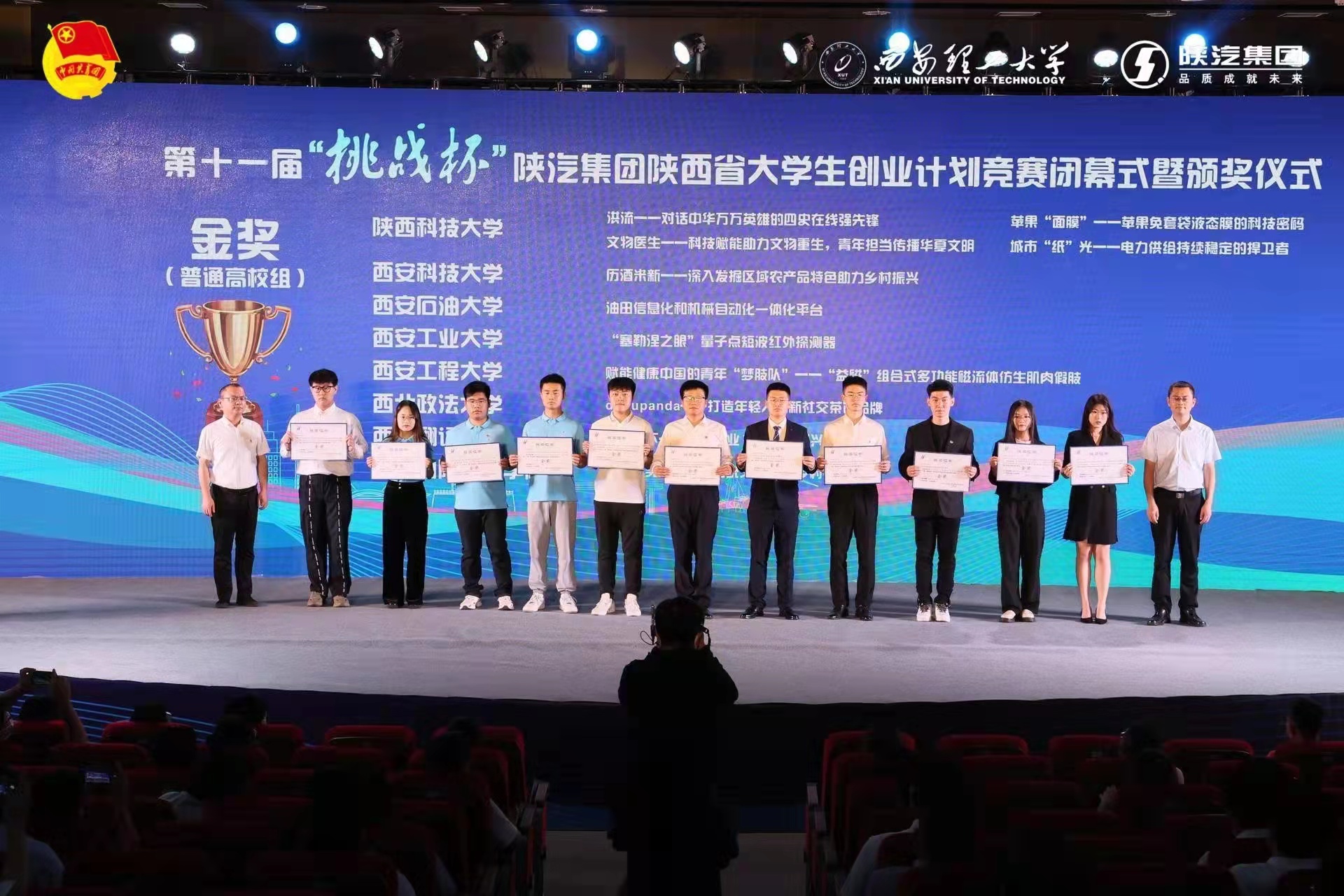 6月25日,由共青團(tuán)陜西省委、中共陜西省委教育工委、陜西省科學(xué)技術(shù)廳、陜西省人力資源和社會(huì)保障廳、陜西省科學(xué)技術(shù)協(xié)會(huì)、陜西省社會(huì)科學(xué)院、陜西省學(xué)生聯(lián)合會(huì)、陜西省西咸新區(qū)開(kāi)發(fā)建設(shè)管理委員會(huì)主辦,西安理工大學(xué)、秦創(chuàng)原創(chuàng)新促進(jìn)中心承辦的第十一屆“挑戰(zhàn)杯”陜汽集團(tuán)陜西省大學(xué)生創(chuàng)業(yè)計(jì)劃競(jìng)賽圓滿落幕。我校共榮獲金獎(jiǎng)4件、銀獎(jiǎng)10件、銅獎(jiǎng)1件,推薦參評(píng)省賽項(xiàng)目全部獲獎(jiǎng),再次以出色成績(jī)獲得“優(yōu)勝杯”。