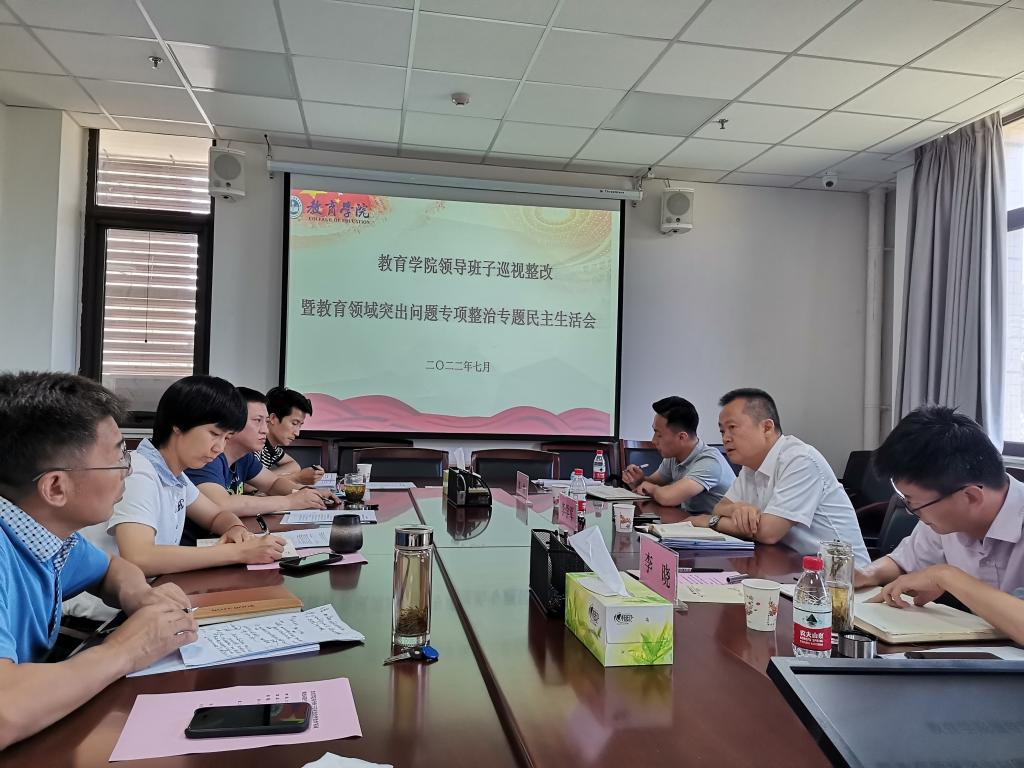 7月6日下午,教育學(xué)院召開領(lǐng)導(dǎo)班子巡視整改暨教育領(lǐng)域突出問題專項(xiàng)整治專題民主生活會(huì)。副校長李學(xué)軍參會(huì)指導(dǎo),校內(nèi)第三指導(dǎo)組成員、校黨委委員李曉及第三指導(dǎo)組成員李帥列席會(huì)議。學(xué)院領(lǐng)導(dǎo)班子成員、教職工黨支部書記等參加了會(huì)議。會(huì)議由學(xué)院黨委書記趙蕾主持。