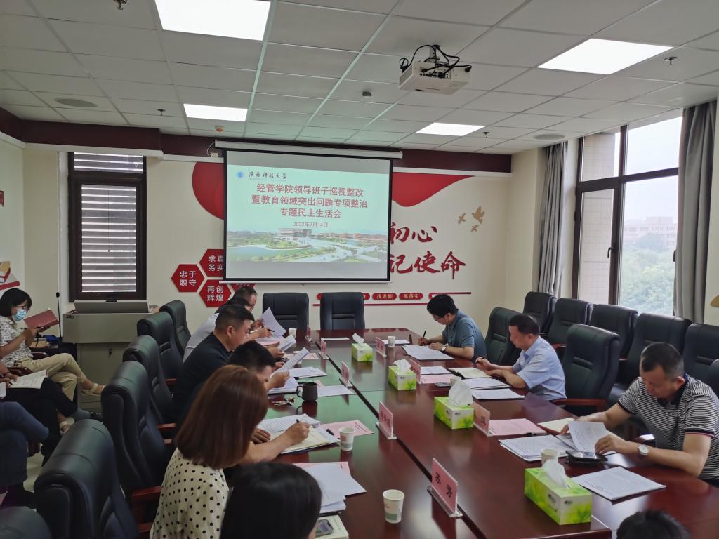 7月14日下午,經(jīng)濟與管理學(xué)院在人文樓A415會議室召開巡視整改暨教育領(lǐng)域突出問題專項整治專題民主生活會。校黨委委員、副校長黃劍鋒出席會議并做指導(dǎo)講話,校第一督導(dǎo)組陳援、趙成列席會議。學(xué)院領(lǐng)導(dǎo)班子成員、黨委委員和教工黨支部書記代表、黨委組織員、黨政辦負責(zé)人參加會議。會議由院黨委書記崔楠主持。