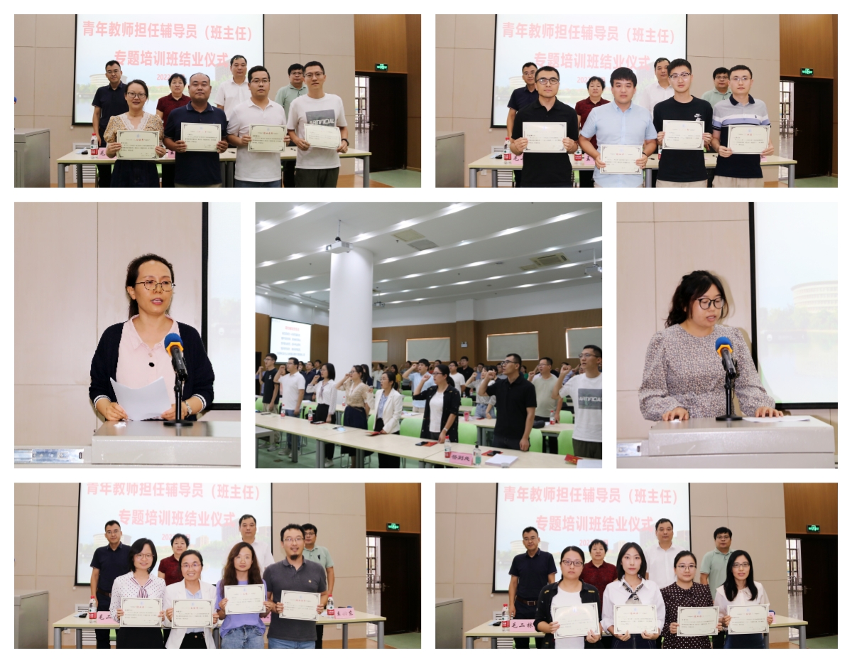 結(jié)業(yè)儀式上,材料科學(xué)與工程學(xué)院李翠艷、電子信息與人工智能學(xué)院鄭莎作為學(xué)員代表發(fā)言,分享了培訓(xùn)心得體會(huì),學(xué)工部、人事處、組織部等部門負(fù)責(zé)人為學(xué)員代表頒發(fā)結(jié)業(yè)證書。全體學(xué)員進(jìn)行了高校輔導(dǎo)員誓詞宣誓。