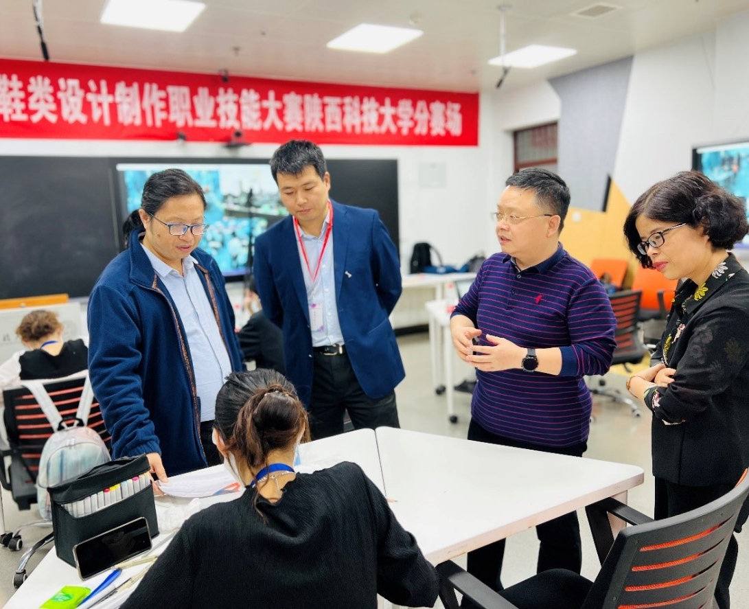 開(kāi)幕式結(jié)束后,劉宗明、賀雪梅和三位裁判員老師在我校分賽場(chǎng)現(xiàn)場(chǎng)觀摩了服裝專業(yè)8組參賽學(xué)生進(jìn)行鞋款創(chuàng)意設(shè)計(jì),鼓勵(lì)服裝專業(yè)要以此次協(xié)辦鞋類設(shè)計(jì)制作職業(yè)技能大賽為契機(jī),深化人才培養(yǎng)模式改革,培養(yǎng)和發(fā)掘更多優(yōu)秀人才,為陜西省制鞋行業(yè)的高質(zhì)量發(fā)展貢獻(xiàn)力量。