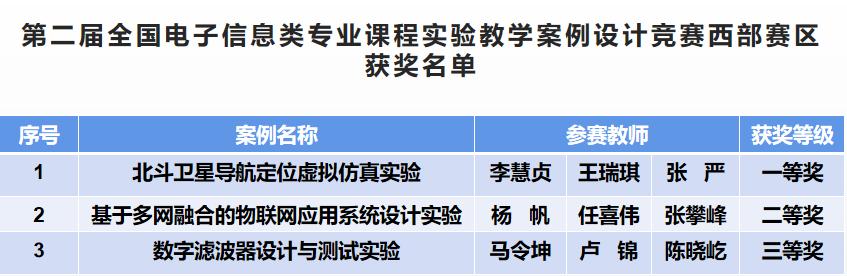 第二屆全國高校電子信息類專業(yè)課程實驗教學案例設計競賽由教育部高等學校電子信息類專業(yè)教學指導委員會、國家級實驗教學示范中心聯席會電子學科組主辦,西部賽區(qū)由西安郵電大學承辦。本次比賽通過騰訊會議方式在線上舉行,來自西安交通大學、西北工業(yè)大學、西安電子科技大學、電子科技大學、成都大學、重慶郵電大學、蘭州大學、蘭州交通大學、寧夏大學等32所高校的104個實驗案例參加西部賽區(qū)初賽。我校李慧貞教師團隊的“北斗衛(wèi)星導航定位虛擬仿真實驗”案例獲西部賽區(qū)一等獎,楊帆教師團隊的“基于多網融合的物聯網應用系統(tǒng)設計實驗”案例獲西部賽區(qū)二等獎,馬令坤教師團隊的“數字濾波器設計與測試實驗”案例獲西部賽區(qū)三等獎。