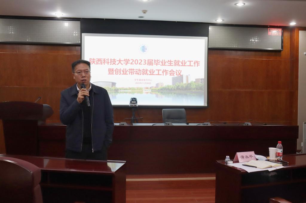 11月8日,陜西省教育廳聯(lián)合省人社廳召開2023屆全省高校畢業(yè)生就業(yè)工作暨創(chuàng)業(yè)帶動就業(yè)工作視頻會議,校黨委副書記郭強、副校長蒲永平分別在主會場和分會場出席會議。為貫徹落實會議精神,11月11日上午,學工系統(tǒng)召開專題會議進一步部署推進2023屆畢業(yè)生就業(yè)工作,郭強出席會議并講話。學工部、網(wǎng)絡(luò)思想政治工作中心、校團委負責人及各學院學生工作負責人參加會議。會議由學工部部長、學生就業(yè)指導中心主任張凱凱主持。