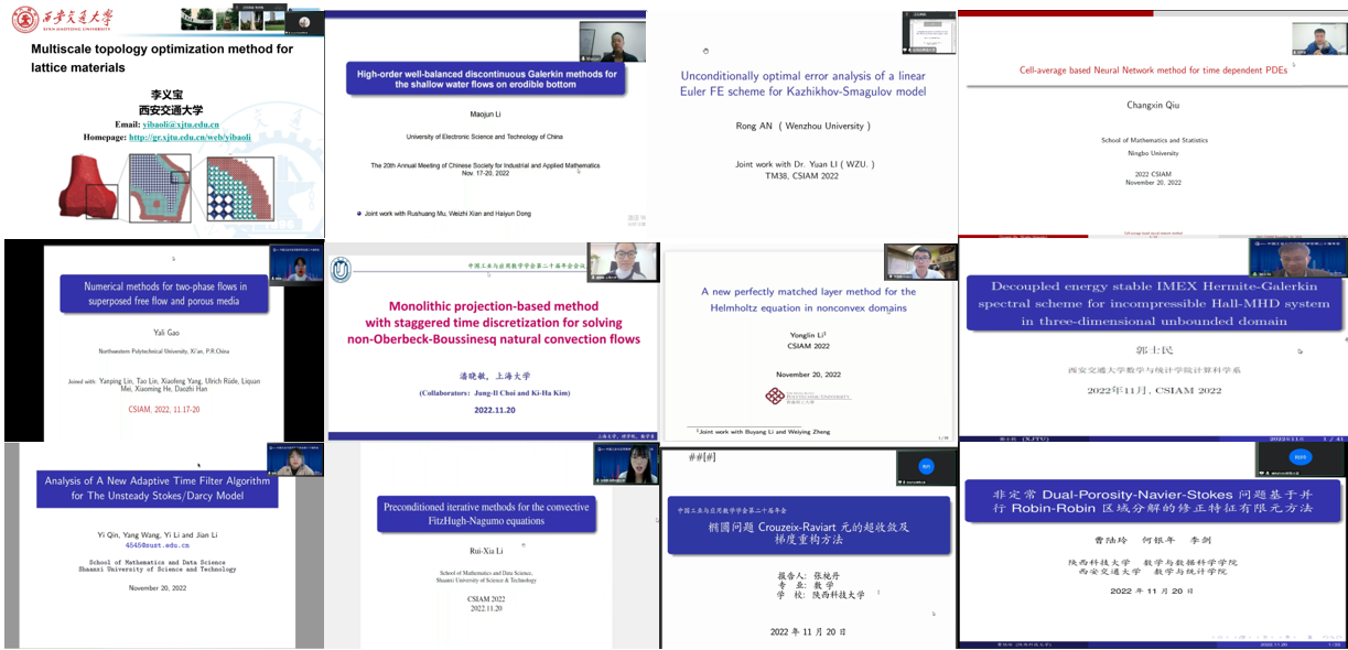11月17日至20日,中國工業(yè)與應用數(shù)學學會第二十屆年會(CSIAM 2022)通過騰訊會議線上舉行。20日上午,由我校數(shù)學與數(shù)據(jù)科學學院院長李劍教授、香港理工大學李步揚教授組織的"復雜多物理場耦合問題的高效方法”主題論壇順利舉行。李劍教授團隊成員秦毅、曹陸玲副教授,李瑞霞、張杝丹博士針對計算前沿科學問題在主題討論會上作學術報告,我校師生代表共200余人線上參會。