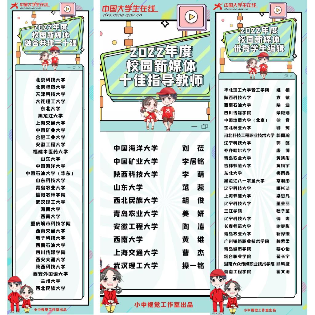 12月23日,由教育部主導(dǎo)并推動的網(wǎng)絡(luò)文化建設(shè)與主題教育平臺“中國大學(xué)生在線”2022年度校園新媒體表彰名單公布,我校蟬聯(lián)“校園新媒體融合共建三十強高?!保W(wǎng)絡(luò)思想政治工作中心主任李萌再次獲得“校園新媒體十佳指導(dǎo)教師”榮譽稱號,經(jīng)濟與管理學(xué)院學(xué)生袁敏獲評“校園新媒體優(yōu)秀學(xué)生編輯”。
