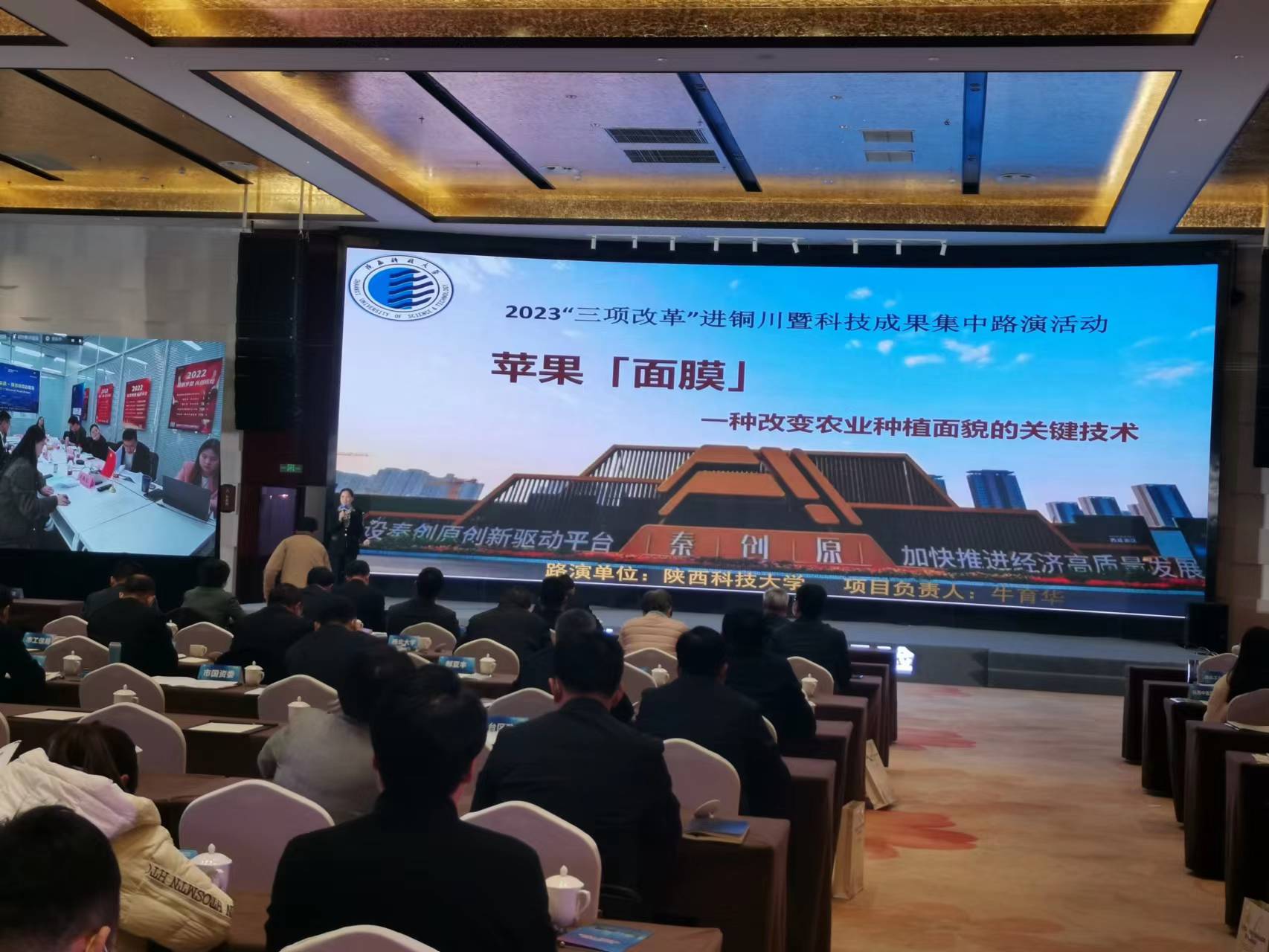 2月23日,“三項(xiàng)改革”進(jìn)銅川暨科技成果集中路演活動(dòng)在銅川新區(qū)舉行。副省長(zhǎng)戴彬彬出席并為秦創(chuàng)原“三項(xiàng)改革”成果轉(zhuǎn)化試驗(yàn)區(qū)揭牌,省政協(xié)副主席、省委科技工委書(shū)記、省科技廳廳長(zhǎng)孫科出席并為飛地(銅川)科創(chuàng)中心揭牌。我校應(yīng)邀參加。省內(nèi)部分高校、投融資機(jī)構(gòu),秦創(chuàng)原促進(jìn)中心等單位共聚一堂,共同探討交流創(chuàng)新思想、創(chuàng)新技術(shù),推動(dòng)項(xiàng)目合作、產(chǎn)業(yè)融合。