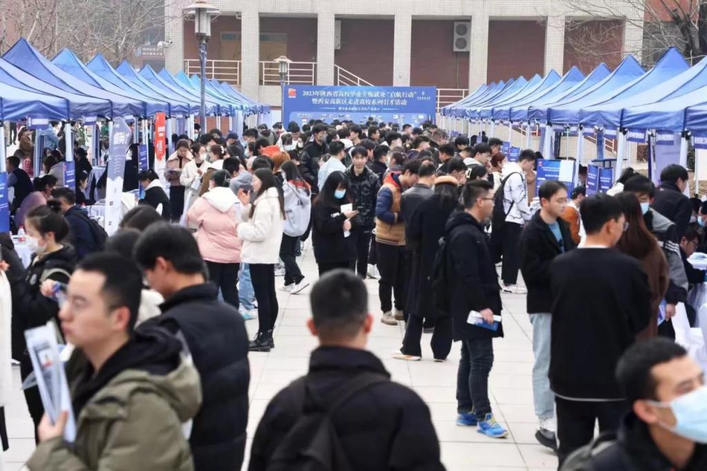 座談會后,全體人員赴招聘會現(xiàn)場了解情況。據(jù)悉,本次招聘會與高新區(qū)眾多優(yōu)質(zhì)企業(yè)資源進行對接,組織高新區(qū)內(nèi)華陸科技、奕斯偉、愛生無人機技術(shù)、西電國際、增材制造國家研究院、恩梯梯數(shù)據(jù)、中航工業(yè)等近80家知名企業(yè)開展校園招聘活動,涵蓋軟件工程、信息安全、計算機科學與技術(shù)、新能源、新材料、市場營銷、行政管理等崗位900余個,參會人數(shù)1206人,初步達成就業(yè)意向834人次。招聘會還同時啟動線上模式,現(xiàn)場有“校園主播”進行空中宣講、企業(yè)推介、直播帶崗等環(huán)節(jié),當日瀏覽量逾3萬。