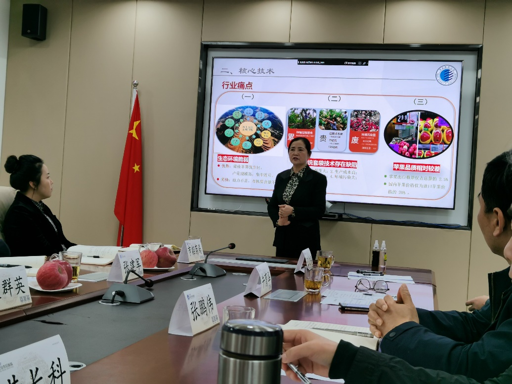 座談會上,張鵬偉介紹了學(xué)校的發(fā)展歷程以及近年來學(xué)校在科技成果轉(zhuǎn)化方面取得的成績,表示學(xué)校將積極推薦可轉(zhuǎn)化科技成果在延安市落地。牛育華教授就“蘋果面膜——一種改變農(nóng)業(yè)種植面貌的關(guān)鍵技術(shù)”及“煤矸石高值化利用技術(shù)”進行了技術(shù)成果展示及推廣情況介紹。雙方分別就成果轉(zhuǎn)化、項目落地、發(fā)展建設(shè)進行了深入交流。吳群英表示陜西科技大學(xué)在科技攻關(guān)、成果轉(zhuǎn)化方面與延安市有著良好的合作基礎(chǔ),希望圍繞“蘋果面膜”這種改變農(nóng)業(yè)種植面貌的關(guān)鍵技術(shù),迭代發(fā)展“蘋果面膜”系列產(chǎn)品,以此推動延安蘋果產(chǎn)業(yè)的轉(zhuǎn)型升級,實現(xiàn)“果業(yè)強,果鄉(xiāng)美,果農(nóng)富”的目標(biāo)?!懊喉肥咧祷眉夹g(shù)”要按照“全產(chǎn)業(yè)鏈、全承載”的路線,入駐延安秦創(chuàng)原平臺,落地延安高新技術(shù)產(chǎn)業(yè)開發(fā)區(qū),實現(xiàn)雙方互利共贏、共同發(fā)展。