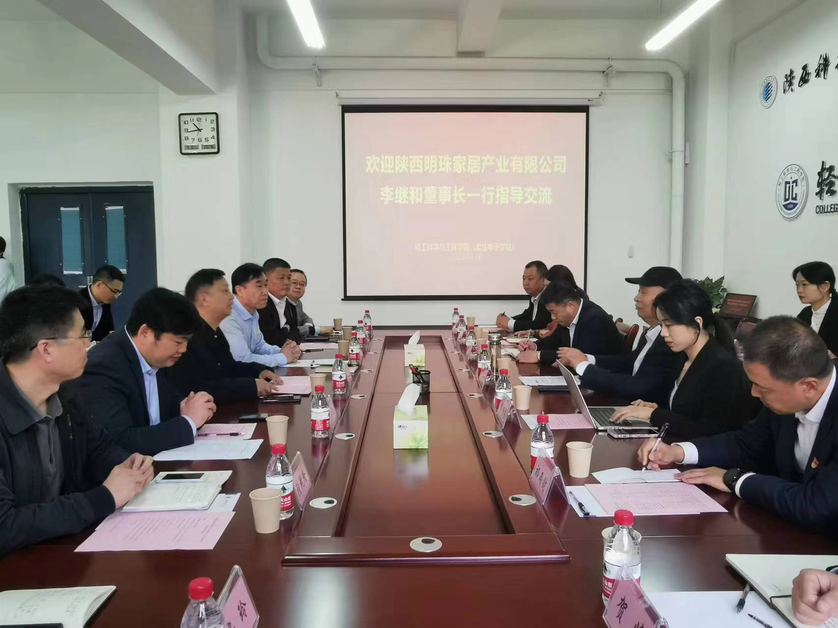 4月10日上午,陜西明珠家居產業(yè)有限公司董事長李繼和一行到輕工科學與工程學院(柔性電子學院)進行校企合作洽談,副校長黃劍鋒,輕工學院黨委書記李新平、院長呂斌及班子成員,設計與藝術學院(絲路文化與傳播學院)黨委書記劉和林、副書記安玲以及輕工學院教師代表出席會議,會議由李新平主持。