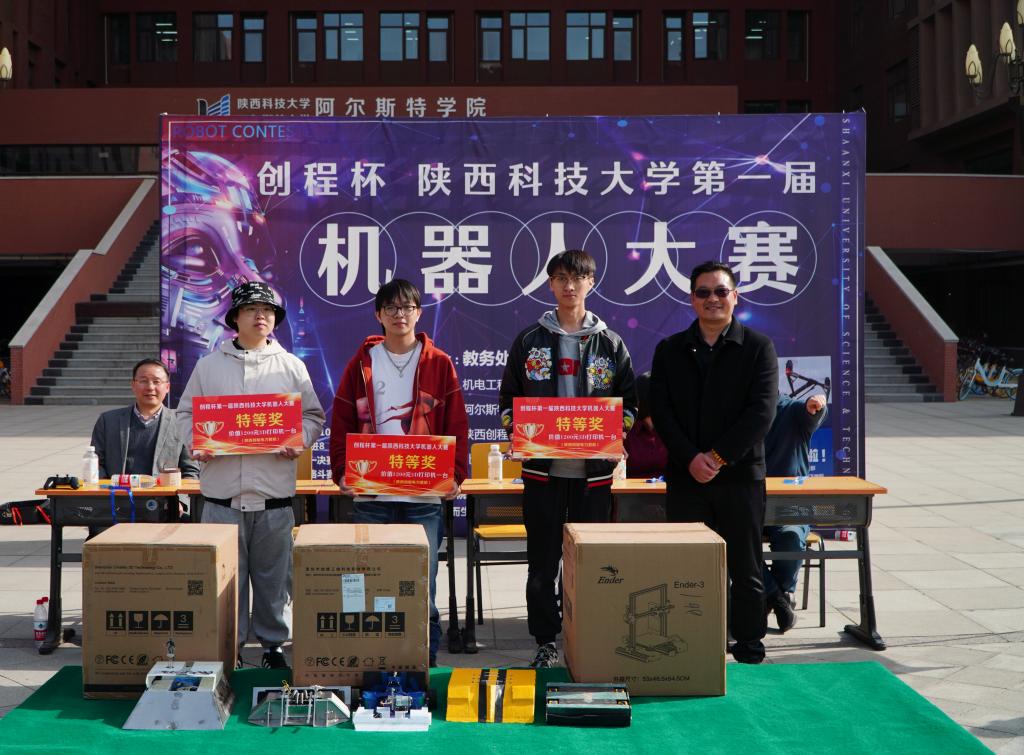為激勵科大青年的創(chuàng)新意識和實踐精神,“創(chuàng)程杯”陜西科技大學(xué)首屆機器人大賽于4月8日圓滿落幕。大賽由教務(wù)處主辦,機電工程學(xué)院(智能制造與機器人工程學(xué)院)和阿爾斯特學(xué)院聯(lián)合承辦,校友會大力支持,陜西創(chuàng)程電力開發(fā)有限公司冠名贊助,北京地平線機器人技術(shù)研發(fā)有限公司、機器人工程專業(yè)教研室、校北斗機器人協(xié)會提供技術(shù)支持,校友總會辦公室主任殷立雄,教務(wù)處副處長邵亮,機電學(xué)院副院長袁越錦,我校校友、陜西創(chuàng)程電力開發(fā)有限公司董事長唐秸(管理2000級)、總經(jīng)理張政(機電2000級)等嘉賓現(xiàn)場指導(dǎo)。