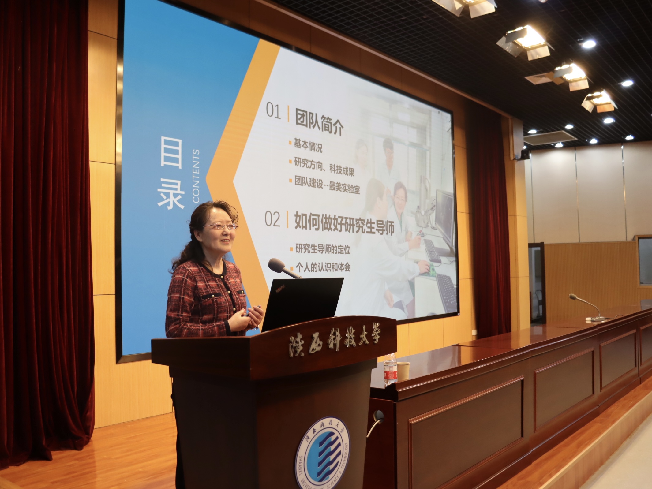 張美云作了《研究生培養(yǎng)的體會(huì)與經(jīng)驗(yàn)分享》的主題報(bào)告,詳細(xì)為大家介紹了研究生教育過程中團(tuán)隊(duì)建設(shè)、導(dǎo)學(xué)關(guān)系、科研文化樹立等方面的內(nèi)容。同時(shí),為各位導(dǎo)師總結(jié)了成為一名優(yōu)秀研究生導(dǎo)師的八字方針:愛心、責(zé)任、素質(zhì)、方法,即永葆投身教育事業(yè)的初心,以對(duì)學(xué)生負(fù)責(zé)、對(duì)團(tuán)隊(duì)負(fù)責(zé)、對(duì)國家負(fù)責(zé)的態(tài)度,不斷修煉自身思想素質(zhì)和業(yè)務(wù)素質(zhì),勤奮執(zhí)著,實(shí)現(xiàn)個(gè)人更大的成長,培養(yǎng)出更加優(yōu)秀的團(tuán)隊(duì)和人才。