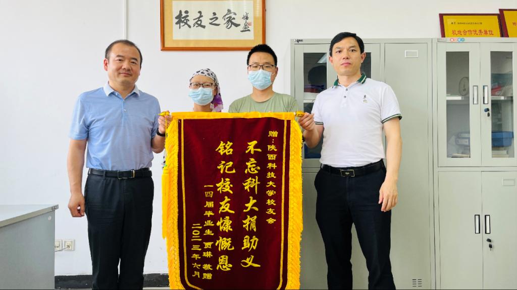 “不忘科大捐助義,銘記校友慷慨恩”。6月9日上午,校友賈琳及其家人專程回到母校,向母校贈(zèng)送錦旗,并委托校友總會(huì)向廣大校友轉(zhuǎn)達(dá)感恩之情。校友總會(huì)、文理學(xué)院熱情接待了賈琳一行。