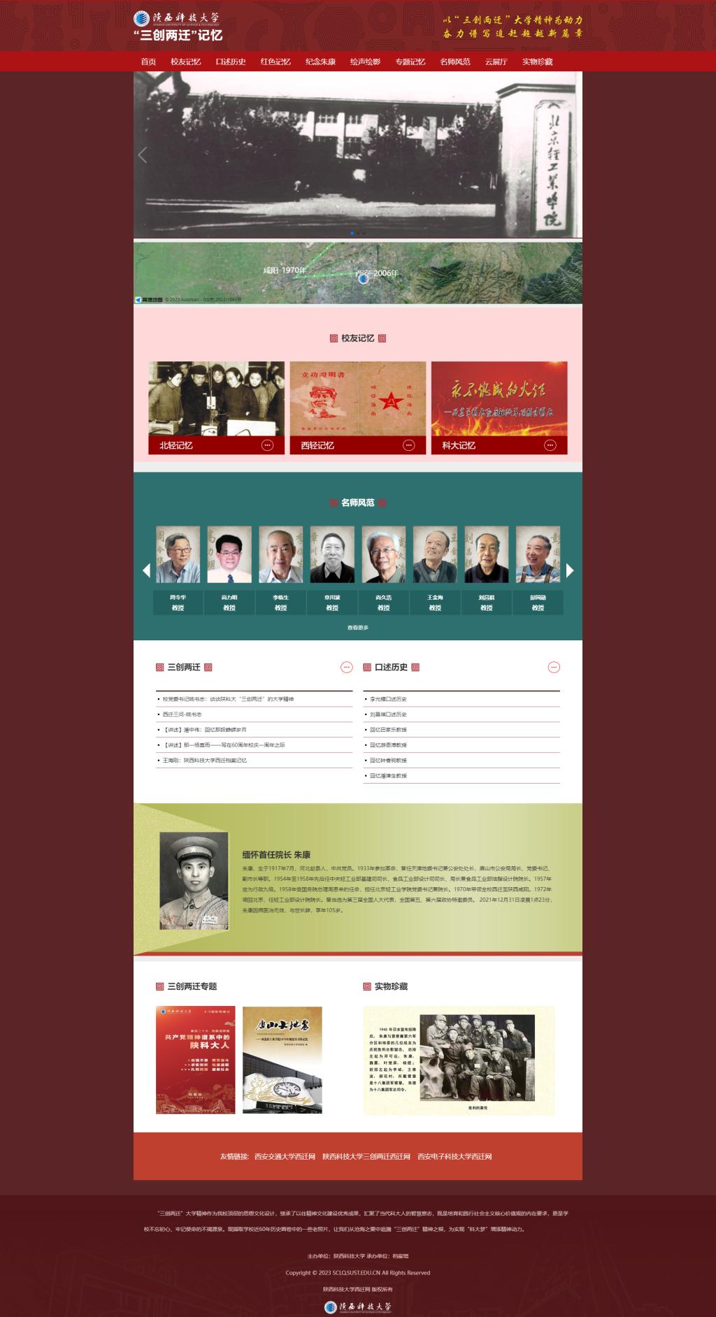 我校檔案館歷時(shí)兩年搭建的“陜西西遷高校記憶”以反映西遷高校大學(xué)精神檔案文獻(xiàn)為主要內(nèi)容,通過(guò)陜西高校網(wǎng)絡(luò)思想政治工作中心這個(gè)重要的育人平臺(tái),用豐富的形式,讓無(wú)數(shù)西遷高校學(xué)子后輩進(jìn)一步感受西遷高校的歷史和大學(xué)精神內(nèi)涵。目前西安電子科技大學(xué)“西電記憶”、陜西科技大學(xué)“三創(chuàng)兩遷”記憶已經(jīng)在陜西高校網(wǎng)絡(luò)思想政治工作中心“陜西西遷高校記憶”正式上線。