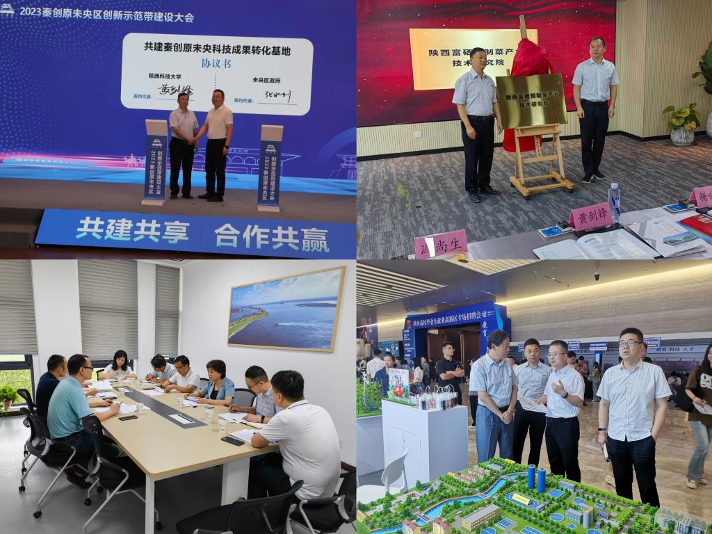 秦創(chuàng)原創(chuàng)新驅(qū)動(dòng)平臺(tái)建設(shè)工作不停歇。7月17日,前沿院常務(wù)副院長(zhǎng)強(qiáng)濤濤帶隊(duì)赴涇河新城對(duì)接科研轉(zhuǎn)化項(xiàng)目落地事宜,涇河新城秦創(chuàng)原工作部副部長(zhǎng)朱琦等相關(guān)人員參加了對(duì)接會(huì)。雙方就項(xiàng)目培育、政策兌現(xiàn)、平臺(tái)建設(shè)等事宜進(jìn)行了深入溝通。7月18日,空港新城秦創(chuàng)原工作部副部長(zhǎng)閆俐臻一行來(lái)我校洽談合作,前沿院常務(wù)副院長(zhǎng)強(qiáng)濤濤及相關(guān)人員參加了洽談會(huì),雙方就共享實(shí)驗(yàn)室、科轉(zhuǎn)項(xiàng)目落地、企業(yè)技術(shù)服務(wù)、項(xiàng)目聯(lián)合申報(bào)達(dá)成合作意向。7月20日,副校長(zhǎng)黃劍鋒受邀出席未央?yún)^(qū)秦創(chuàng)原創(chuàng)新示范帶建設(shè)大會(huì),并與未央?yún)^(qū)人民政府簽訂“共建秦創(chuàng)原未央科技成果轉(zhuǎn)化基地”協(xié)議,該成果轉(zhuǎn)化基地在產(chǎn)業(yè)合作、技術(shù)研發(fā)和成果轉(zhuǎn)化、開(kāi)放共享等方面聯(lián)合聯(lián)動(dòng),推動(dòng)武德路片區(qū)創(chuàng)新發(fā)展。7月28日,副校長(zhǎng)黃劍鋒受邀出席秦創(chuàng)原安康富硒預(yù)制菜產(chǎn)業(yè)科技成果轉(zhuǎn)化項(xiàng)目路演活動(dòng),并與石泉縣人民政府簽訂“陜西富硒預(yù)制菜產(chǎn)業(yè)技術(shù)研究院”協(xié)議。該平臺(tái)根據(jù)石泉富硒食品(預(yù)制菜)產(chǎn)業(yè)發(fā)展需求,研究院從決策咨詢(xún)、產(chǎn)業(yè)技術(shù)研發(fā)、示范基地建設(shè)、產(chǎn)品品牌打造、人才交流培訓(xùn)等方面提供全方位服務(wù),推進(jìn)“百億級(jí)”富硒食品(預(yù)制菜)產(chǎn)業(yè)園區(qū)建設(shè)。