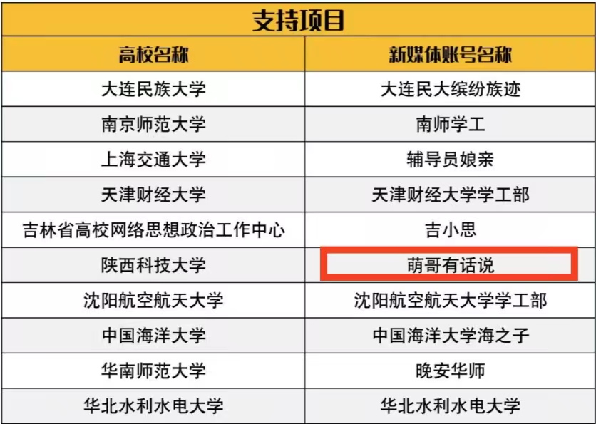 為重點(diǎn)建設(shè)一批高校思政類新媒體賬號,打造有傳播力、影響力、引導(dǎo)力、公信力的網(wǎng)絡(luò)新媒體平臺,經(jīng)高校申報、線上答辯、專家評審等環(huán)節(jié),教育部易班發(fā)展中心于近日公布了2023年度易班“優(yōu)質(zhì)思政內(nèi)容建設(shè)”支持項目立項結(jié)果,我校獲批支持項目1項(全省唯一,全國共10項)、培育項目1項。