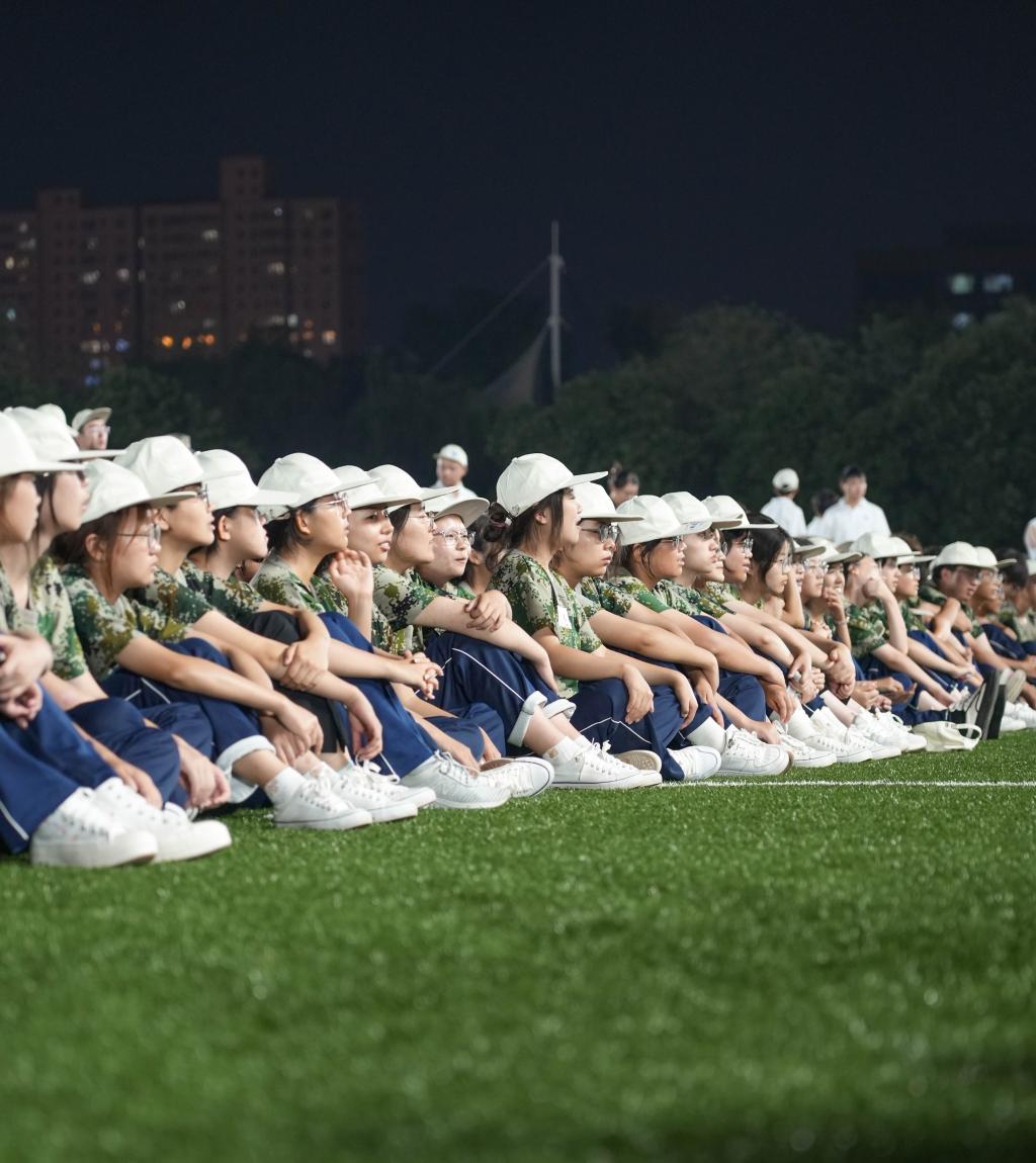 在樹蔭下盤腿坐好,休息時(shí)的閑聊,結(jié)識(shí)新朋友的喜悅,都讓那根緊繃的線稍稍松了下來。一首接一首的唱響有力豪邁的軍歌,伴隨個(gè)人才藝展示傳來的歡呼聲、吶喊聲,軍訓(xùn)中快樂的傳遞是如此簡(jiǎn)單。天空漸漸變暗,汗水、歌聲、淚水、笑聲交織在一起,榮譽(yù)、成長(zhǎng)、青春已經(jīng)鐫刻在了新同學(xué)們大學(xué)生活的初憶中。