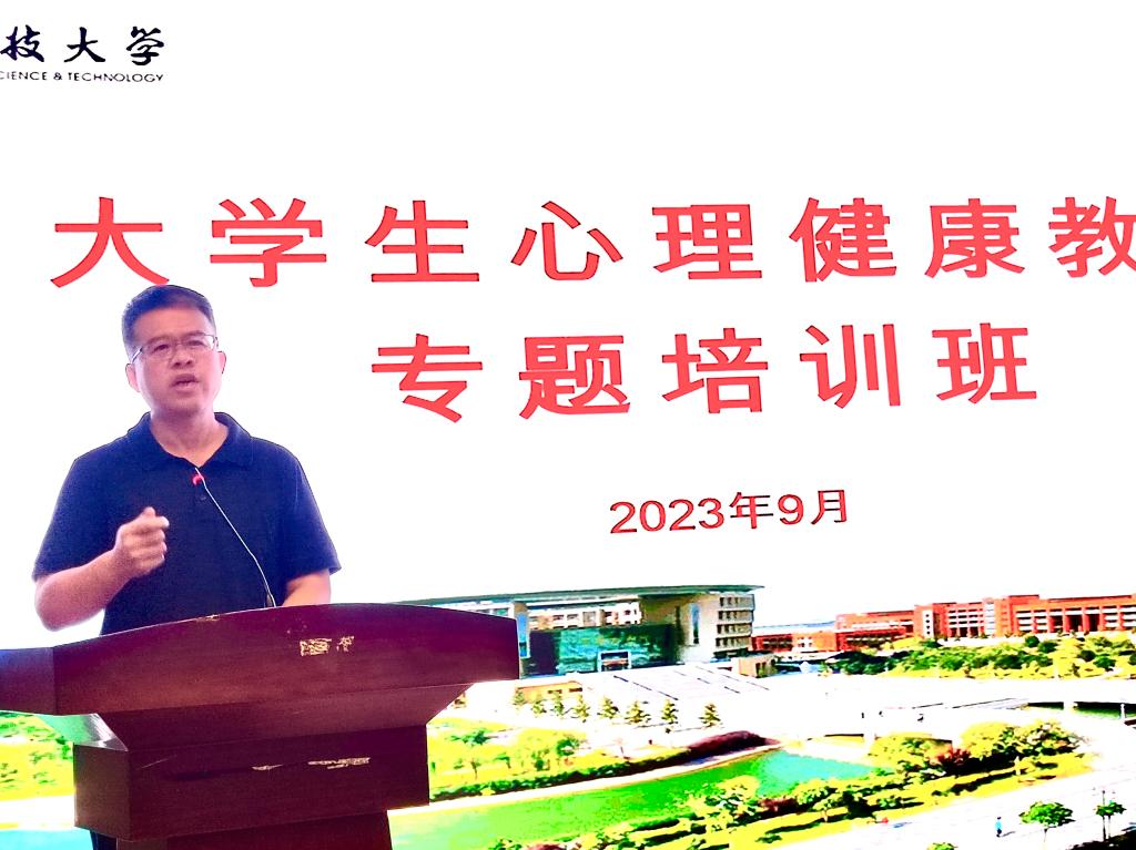 為進(jìn)一步增強學(xué)校心理健康育人隊伍的專業(yè)技能,提高心理危機防控工作的實效性與針對性,提升大學(xué)生心理健康教育工作水平,9月4日至5日,我校舉辦大學(xué)生心理健康教育專題培訓(xùn)班。校黨委副書記郭強出席開班式并講話。學(xué)工部、網(wǎng)絡(luò)思政中心、校團(tuán)委等部門負(fù)責(zé)人,各學(xué)院學(xué)生工作負(fù)責(zé)人,學(xué)工部心理健康教育中心全體人員,各學(xué)院全體專兼職輔導(dǎo)員參加培訓(xùn)。