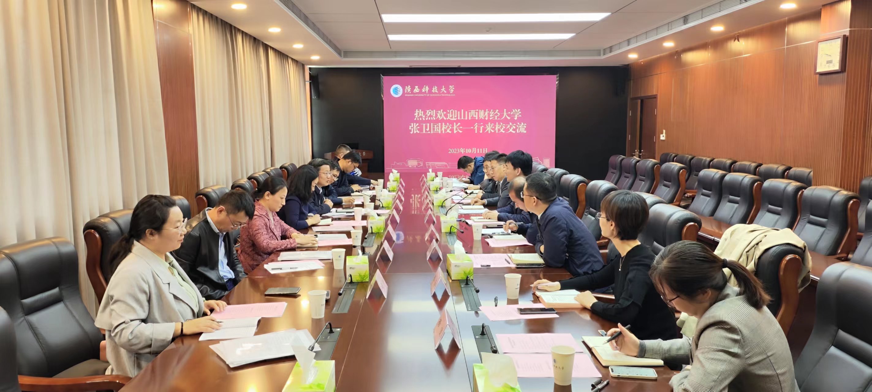張衛(wèi)國介紹了山西財(cái)經(jīng)大學(xué)的基本情況和此次調(diào)研的目的。他表示,近年來陜西科技大學(xué)發(fā)展勢頭強(qiáng)勁,尤其在教學(xué)成果、人才引進(jìn)、成果轉(zhuǎn)化等方面的成效顯著、特色鮮明。認(rèn)為此次交流對山西財(cái)經(jīng)大學(xué)的審核評估工作提供了針對性的指導(dǎo),希望雙方進(jìn)一步拓展加強(qiáng)校際交流合作,促進(jìn)共同發(fā)展。并對我校的熱情接待表示了感謝。
