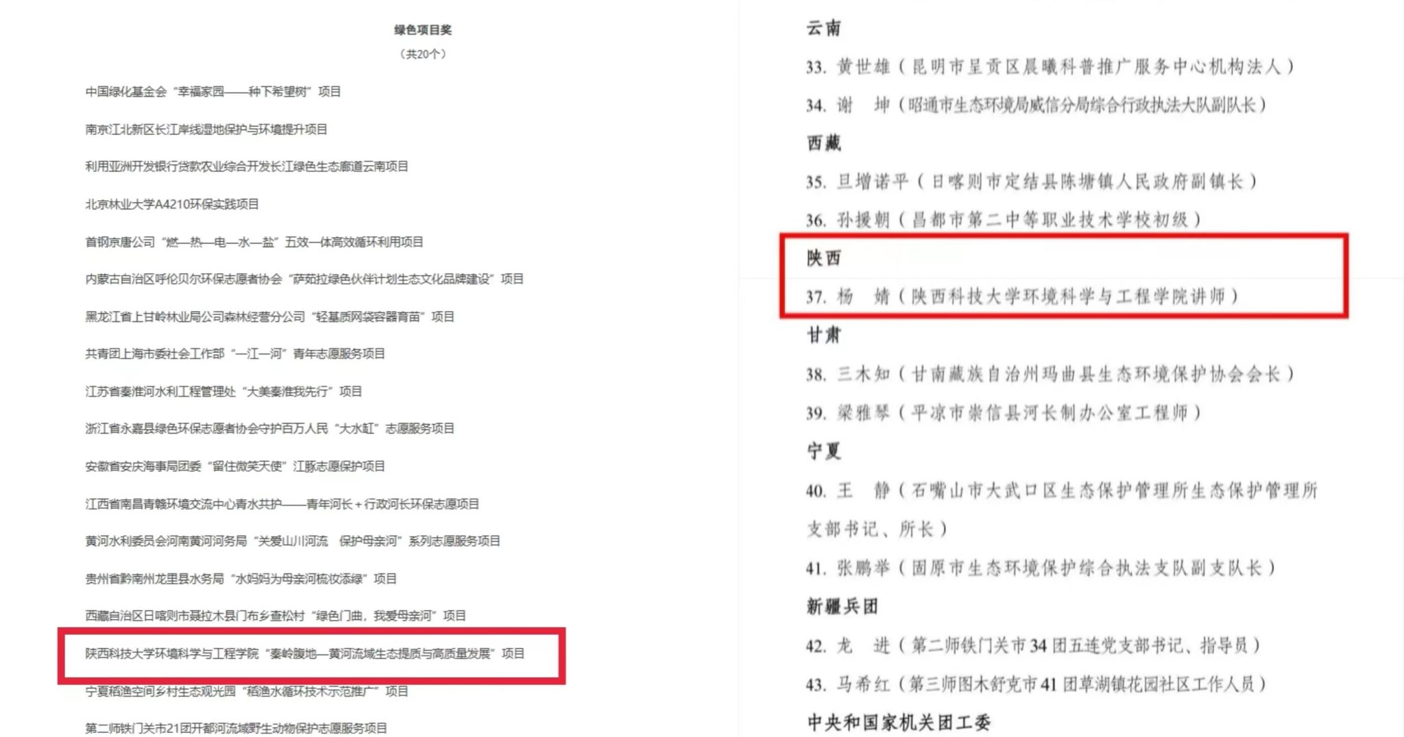 10月27日,全國(guó)保護(hù)母親河行動(dòng)領(lǐng)導(dǎo)小組下發(fā)了《關(guān)于表彰第十一屆母親河獎(jiǎng)的決定》,我校環(huán)境科學(xué)與工程學(xué)院郭軍康教授團(tuán)隊(duì)“秦嶺腹地-黃河流域生態(tài)提質(zhì)與高質(zhì)量發(fā)展”項(xiàng)目榮獲“綠色項(xiàng)目獎(jiǎng)”,青年教師楊婧榮獲“綠色衛(wèi)士獎(jiǎng)”提名獎(jiǎng)。