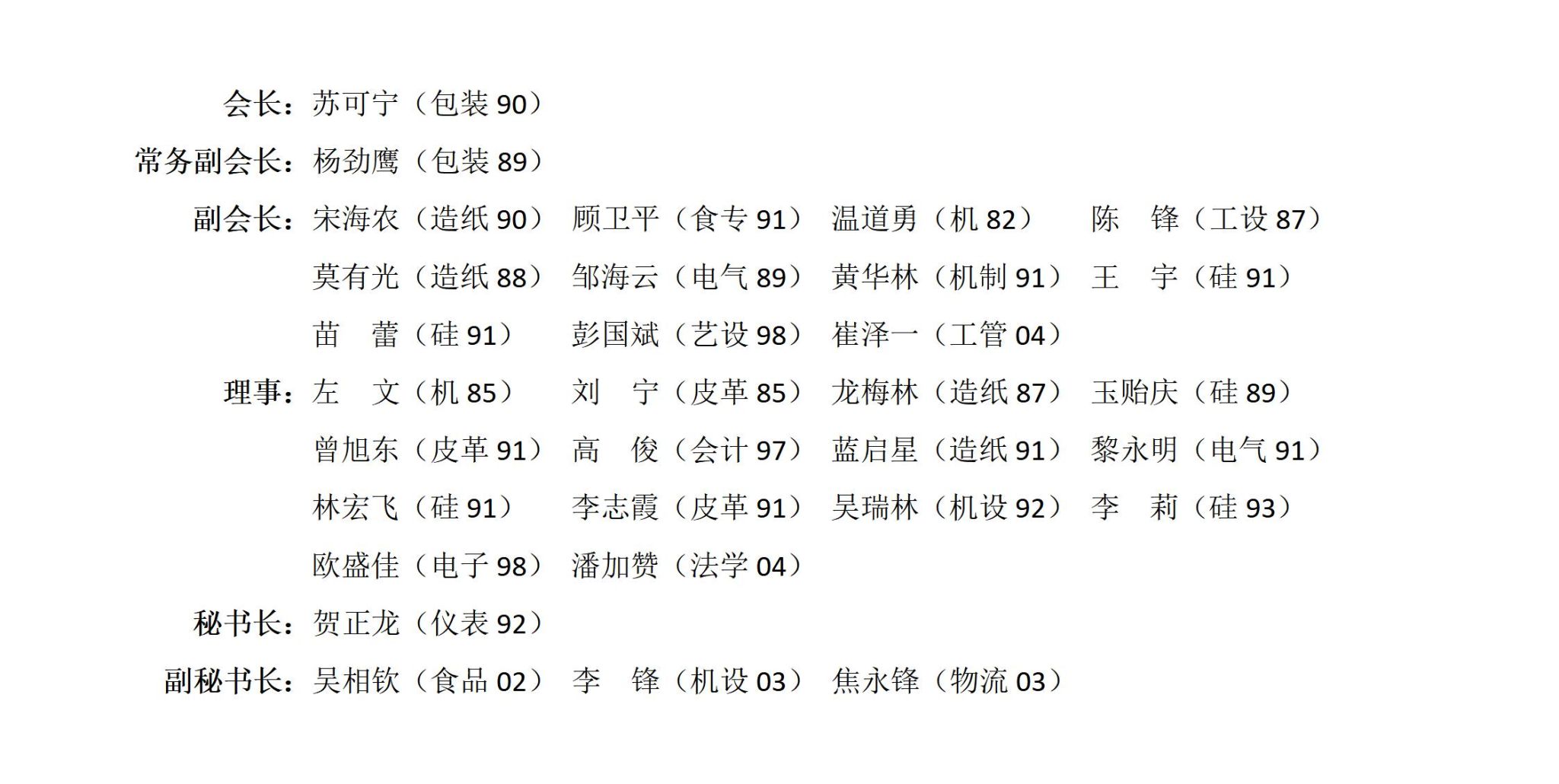 河北校友會會長姚文博(陶瓷77),江門校友會會長盧業(yè)勝(玻82),云南校友會執(zhí)行會長田星源(包86),廣州校友會執(zhí)行會長顧衛(wèi)平(食品91)、牛國強(皮革95)、理事梁耀普(機設90)、副秘書長趙小寧(會計92),深圳校友會常務副會長高俊(會計97)、秘書長趙星翼、副秘書長王一?。〞?7),四川校友會執(zhí)行會長姚磊(光信04)、秘書長陳鑫(工設藝96),天津校友會常務副會長權國興(包裝90)、副會長張英宏(材料87),佛山校友會副會長焦杰勇(材料95),重慶校友會副會長郭長祿(2016MBA)、秘書長王廣軒(陶89),廣東皮革校友會秘書長曾旭東(皮91),安徽校友會秘書長錢志剛(機設89),陜西校友會秘書長唐秸(管理00),長三角機電校友會萬明偉(機械03)等各地校友會代表和機電工程學院(智能制造與機器人工程學院)相關領導參加了大會。
