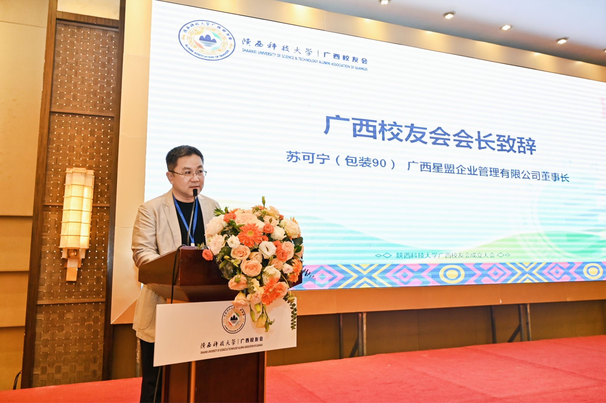 蘇可寧在發(fā)言中代表廣西校友首先向母校表達敬意和感激之情,感謝母校為校友們提供了寶貴的學習機會和人生指引,感謝領導們的關懷和支持,讓校友們在人生的道路上不斷前行。他表示,作為廣西校友會會長,深感責任重大,也將以此為契機,進一步加強校友之間、校友與母校之間的聯(lián)系與合作,共同為母校的發(fā)展和校友的成長貢獻力量。